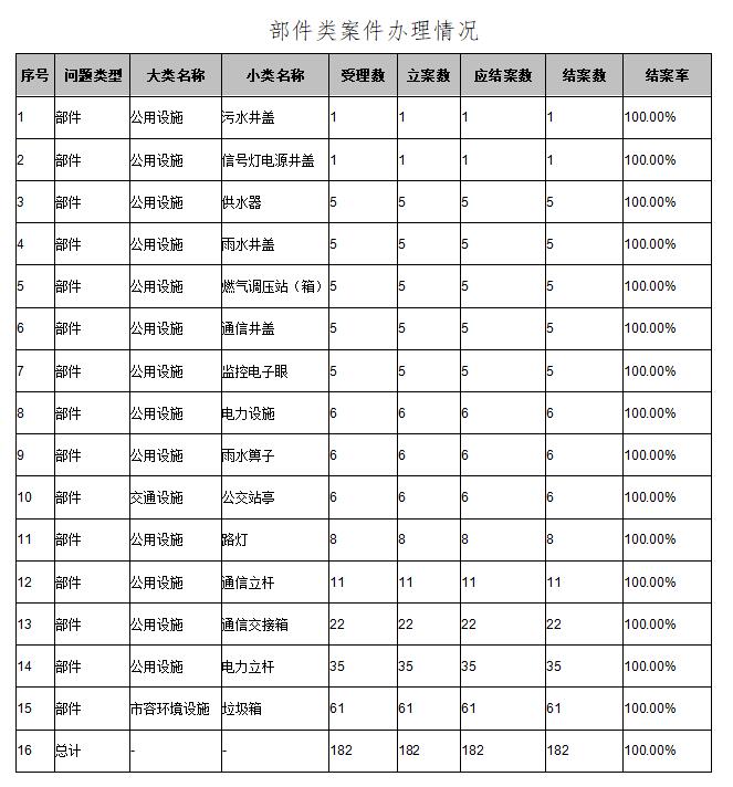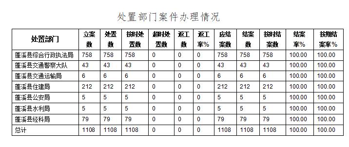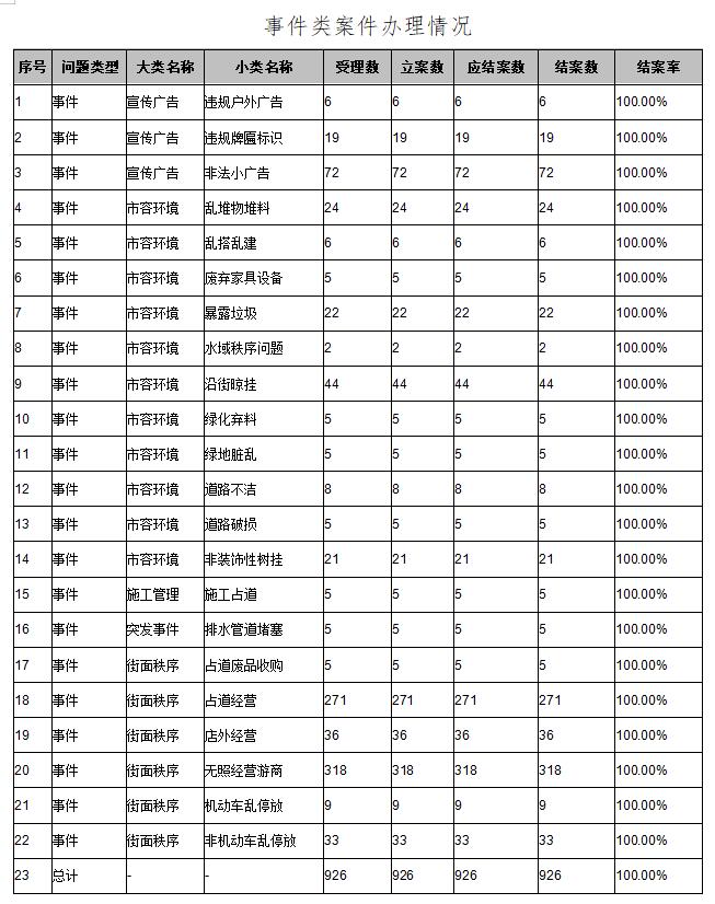 蓬溪县数字城管2023年1月共上报1686件。其中信息采集上报1113件,自行处置上报573件。立案1108件,事件类立案926件,部件类立案182件。应结案1108件,结案1108件,结案率100%,按期结案1108件,按期结案率100%。
