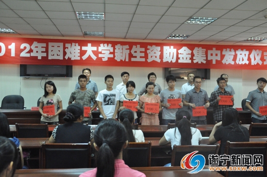8月24日,蓬溪县2012年困难大学新生资助金集中发放仪式隆重举行,110名贫困大学新生领到了2500—3500元不等的政府资助金,资助金总额达40余万元。