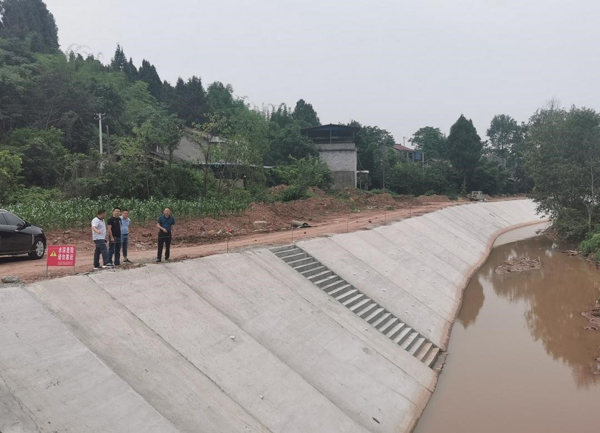 图一:检查蓬溪县天福溪山洪沟防洪治理工程施工现场