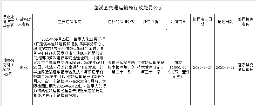 蓬溪县交通运输局行政处罚公示