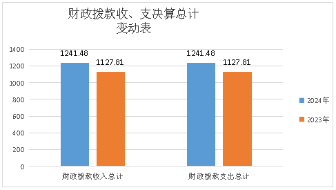2024年度财政拨款收、支总计均为1241.48万元。与2023年度相比,财政拨款收、支总计各增加113.67万元,增长10.08%。主要变动原因是项目支出增加。