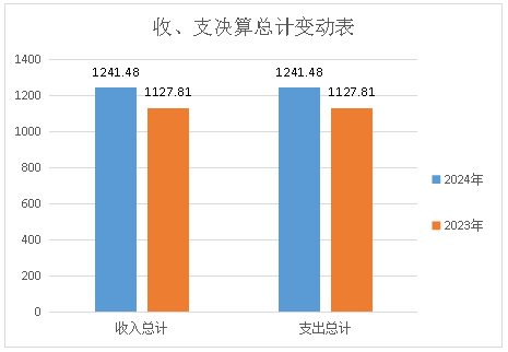 2024年度收、支总计均为1241.48万元。与2023年度相比,收、支总计各增加113.67万元,增长10.08%。主要变动原因是项目支出增加。