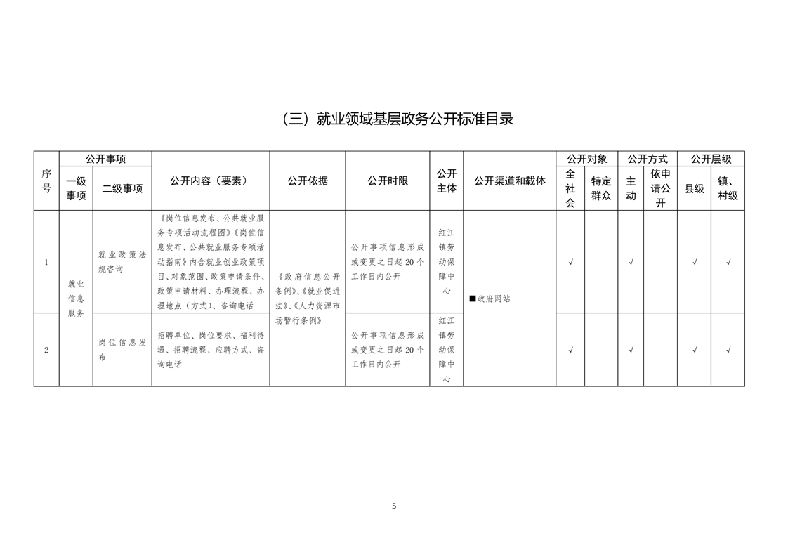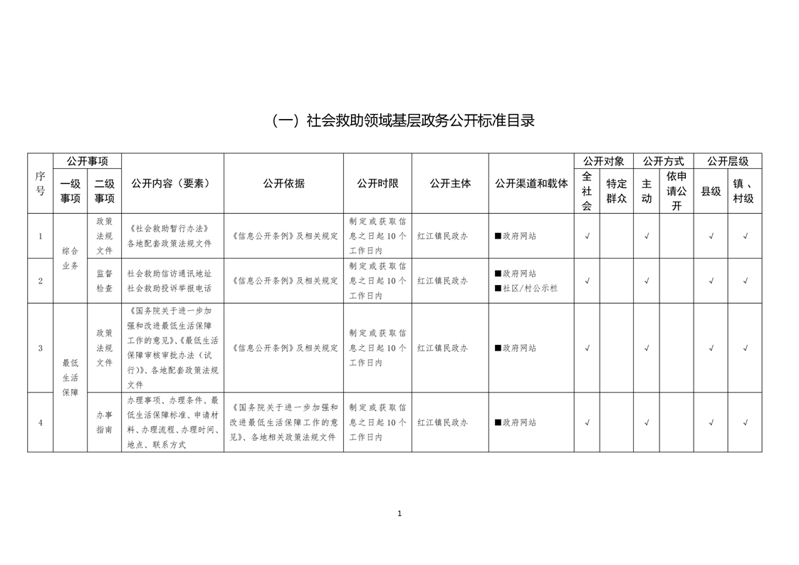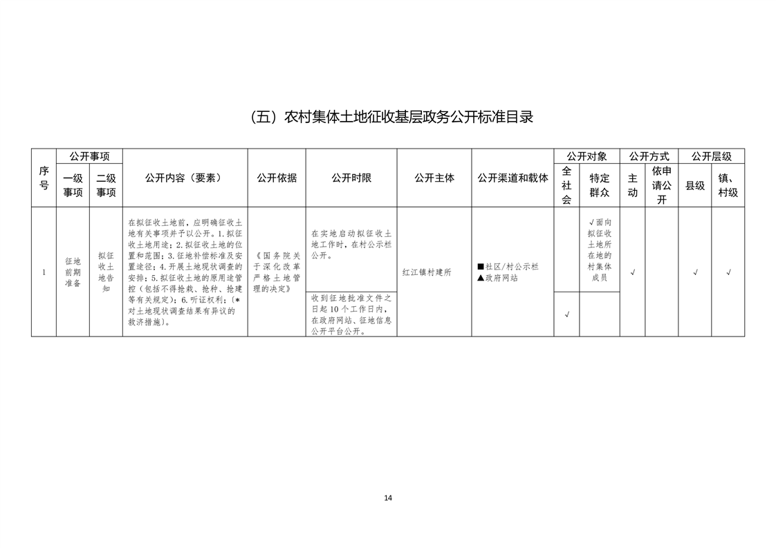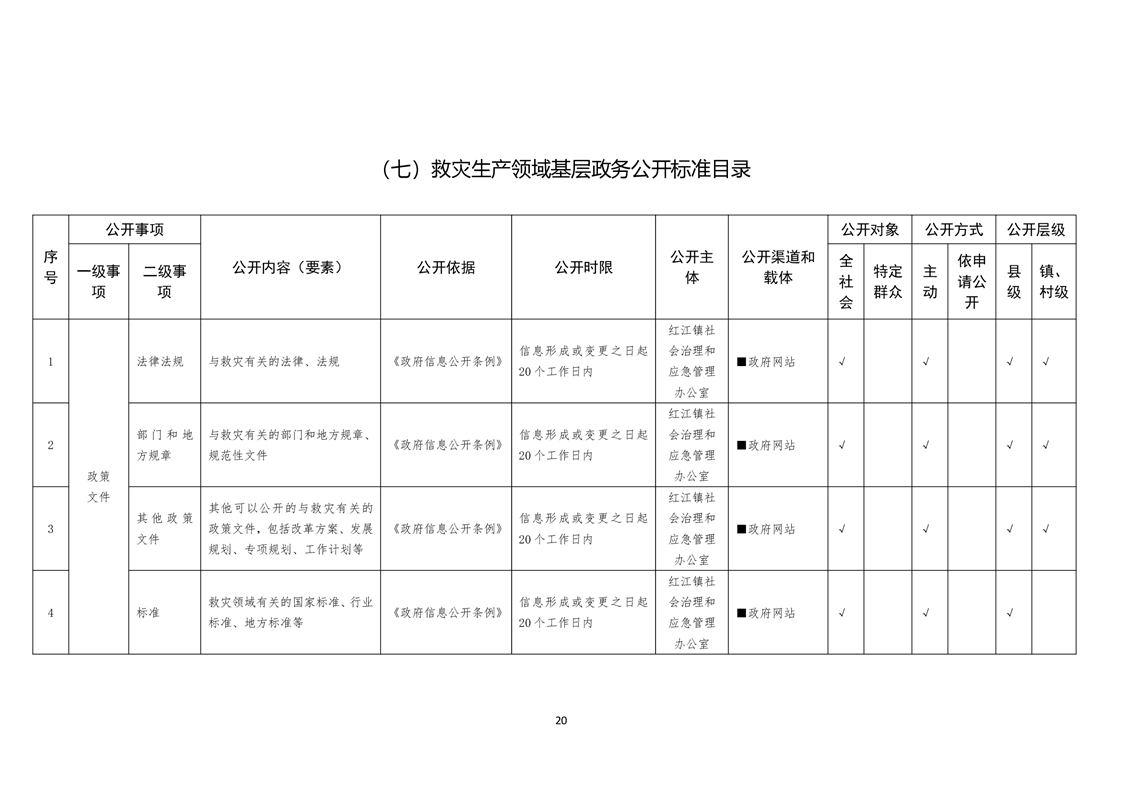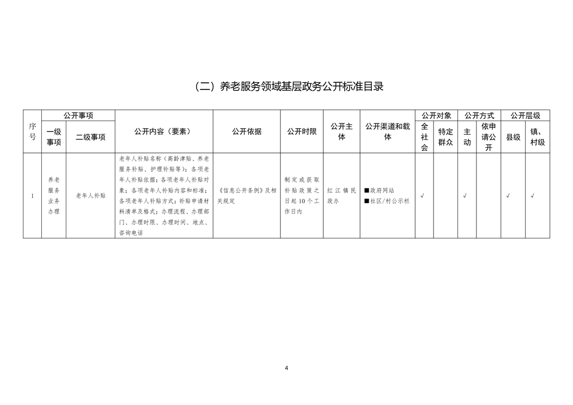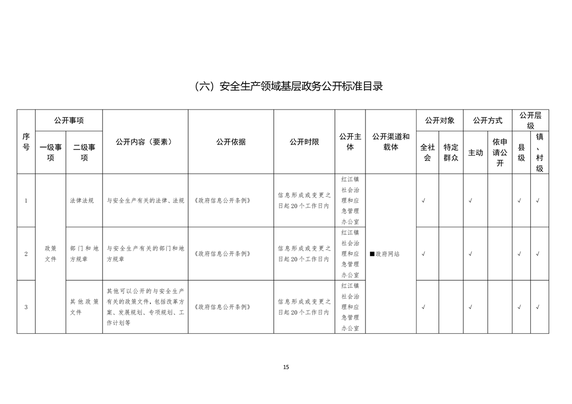 蓬溪县红江镇基层政务公开标准目录