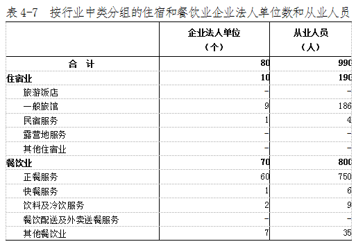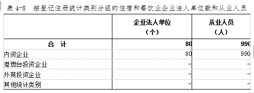 在住宿和餐饮业企业法人单位从业人员中,内资企业占100%(详见表4-8)。