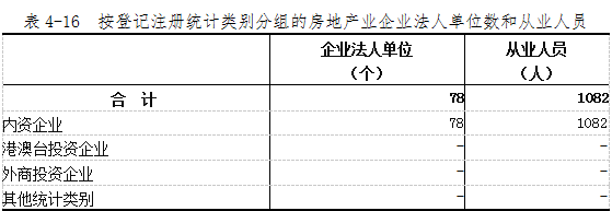 在房地产业企业法人单位从业人员中,内资企业占100%,(详见表4-16)。