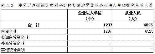 在批发和零售业企业法人单位从业人员中,内资企业占100%(详见表4-2)。