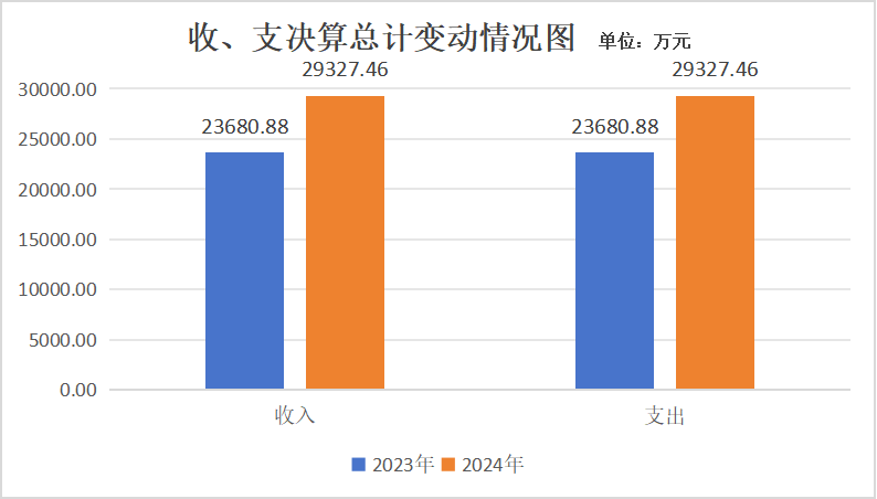 2024年度收、支总计均为29327.46万元。与2023年度相比,收、支总计各增加5646.58万元,增长23.84%。主要变动原因是本年度三所运行经费、污水处理等项目收入和支出较上年增加。