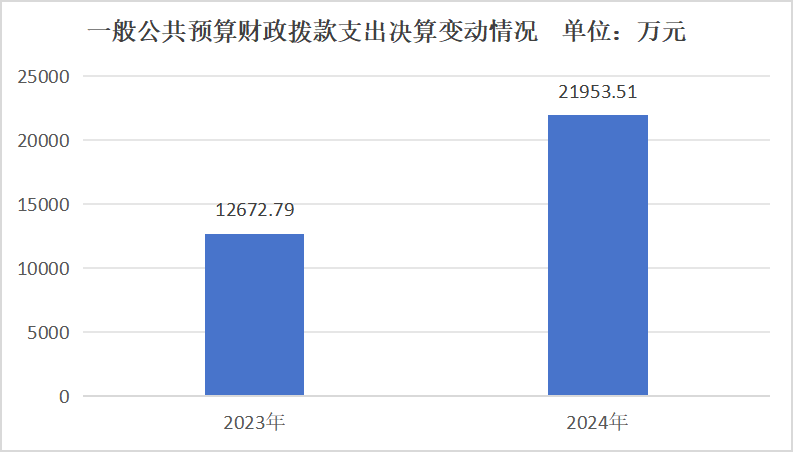 2024年度一般公共预算财政拨款支出21953.51万元,占本年支出合计的74.85%。与2023年度相比,一般公共预算财政拨款支出增加9280.72万元,增长73.23%。主要变动原因是本年度一般公共预算财政拨款三所运行经费、污水处理等项目支出较去年增加。