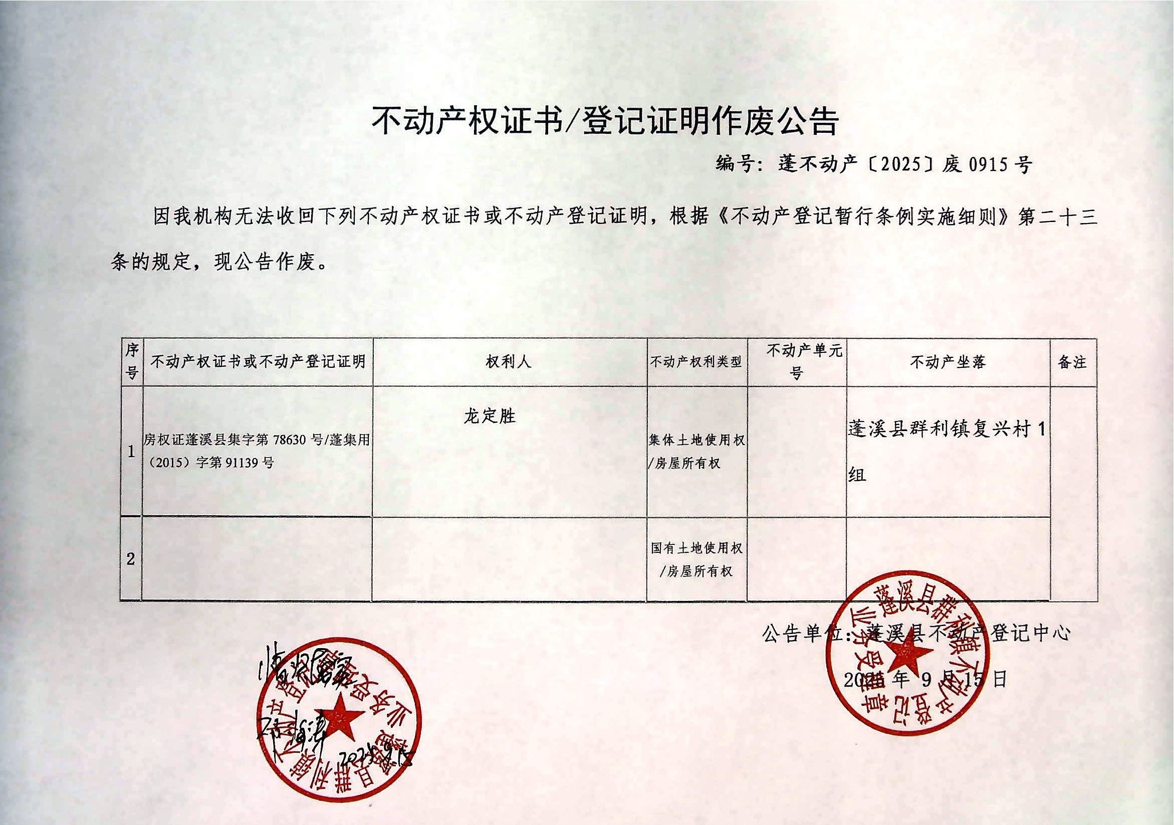 来源:蓬溪县不动产登记中心