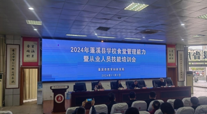 为提升全县学校食堂食品管理水平,11月1日,蓬溪县教育和体育局在蓬溪中学学术报告厅召开2024年蓬溪县学校食堂管理能力暨从业人员技能培训会。会议由县人民政府总督学杨李主持,县委常委、总工会主席邓涛及县委常委、纪委书记、监委主任雍皓天出席会议并讲话。