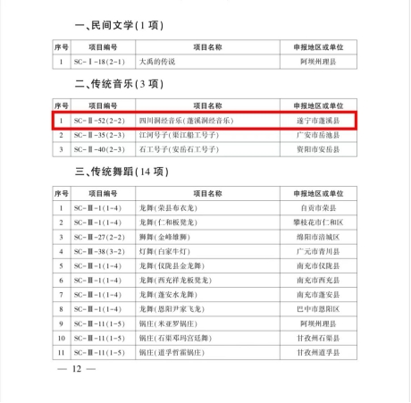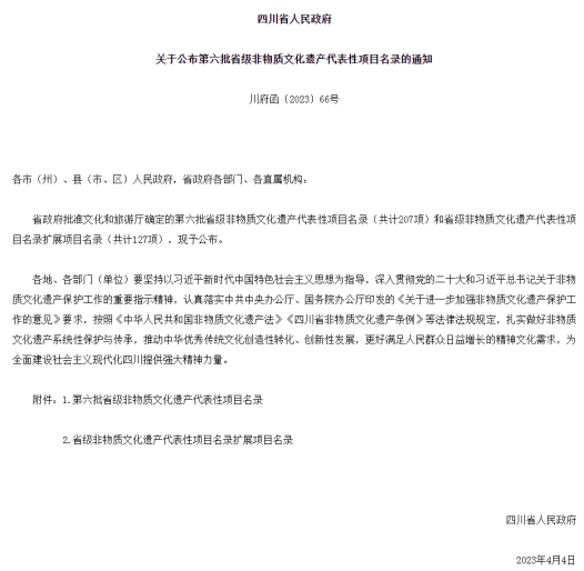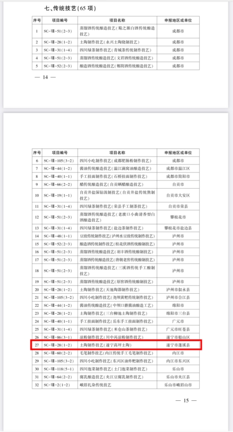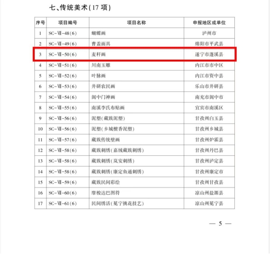 4月4日,四川省人民政府官网发布《四川省人民政府关于公布第六批省级非物质文化遗产代表性项目名录的通知》(川府函〔2023〕66号),其中,蓬溪县麦秆画、四川洞经音乐(蓬溪洞经音乐)、土陶制作技艺(遂宁高坪土陶)成功入选!