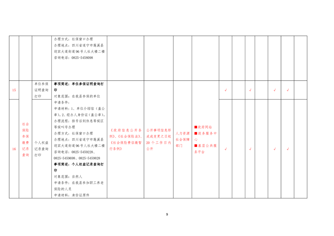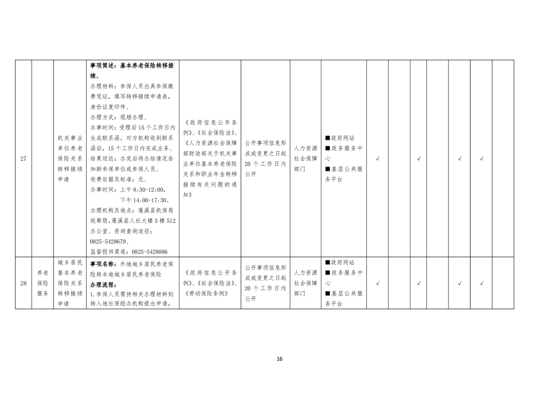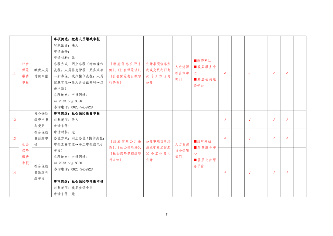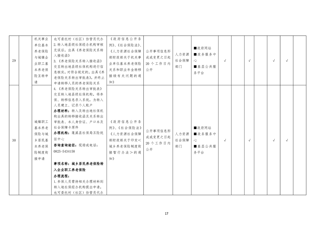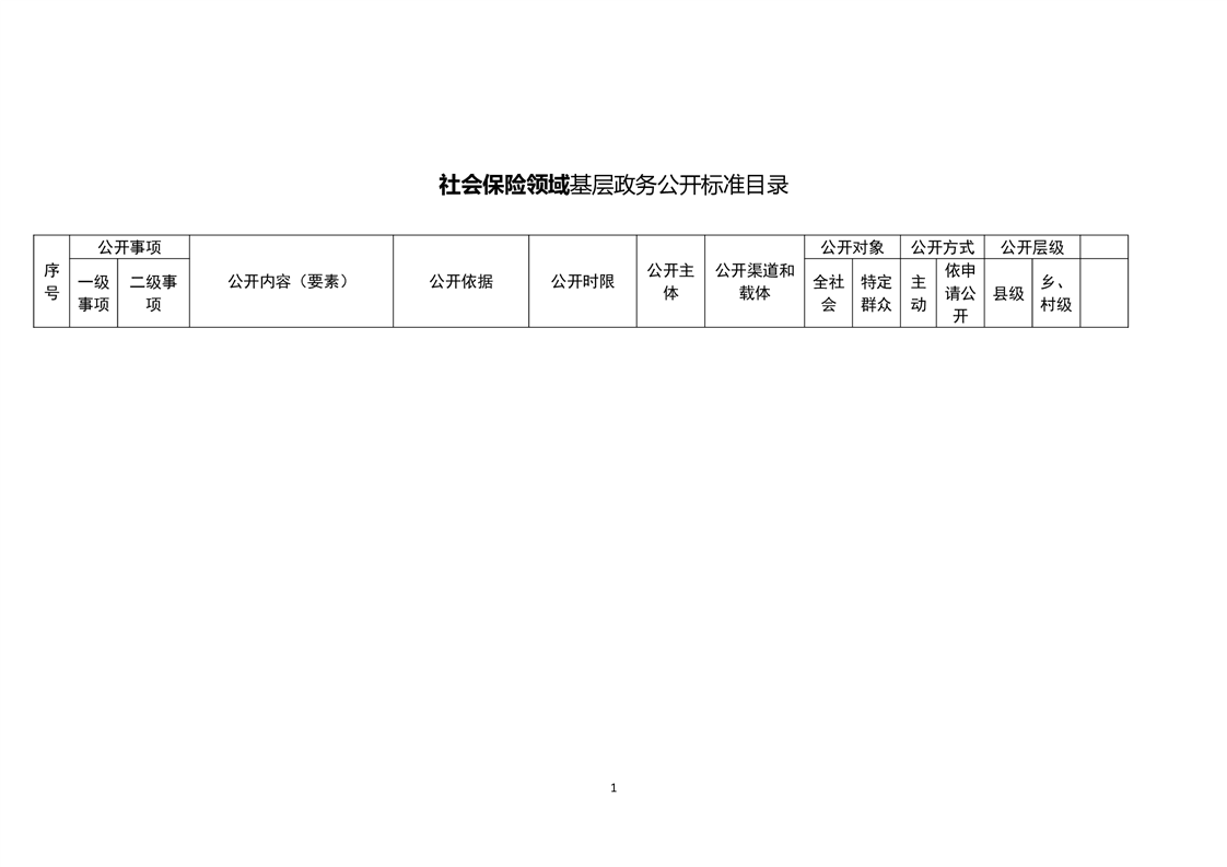 社会保险领域基层政务公开标准目录