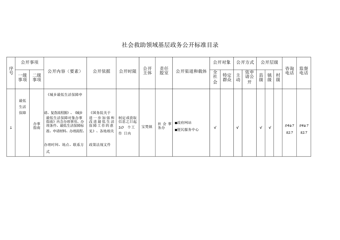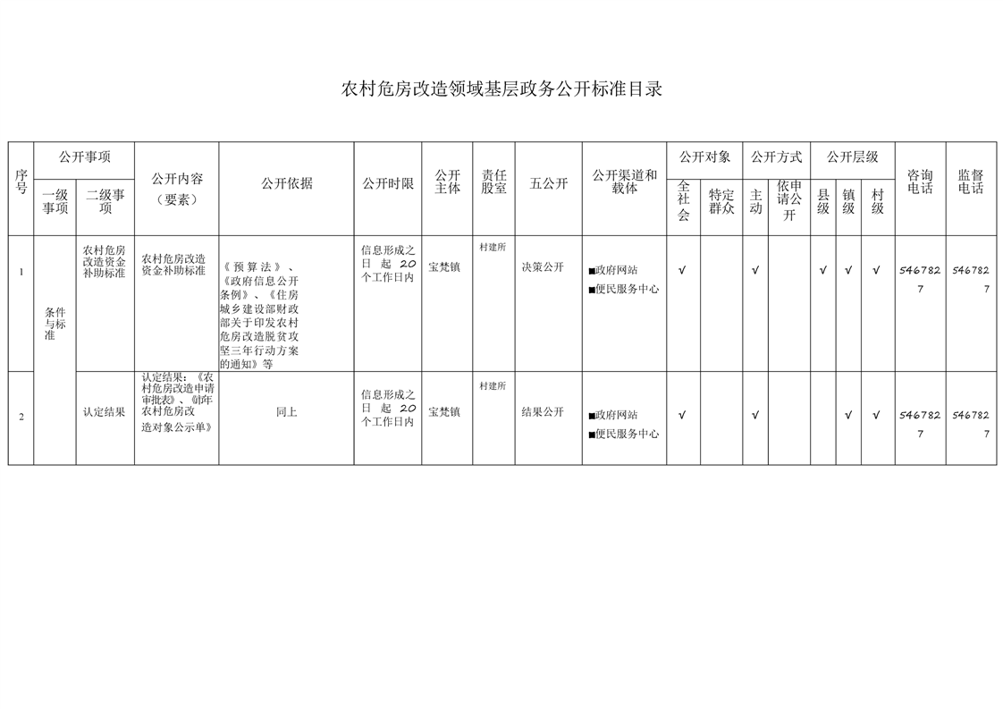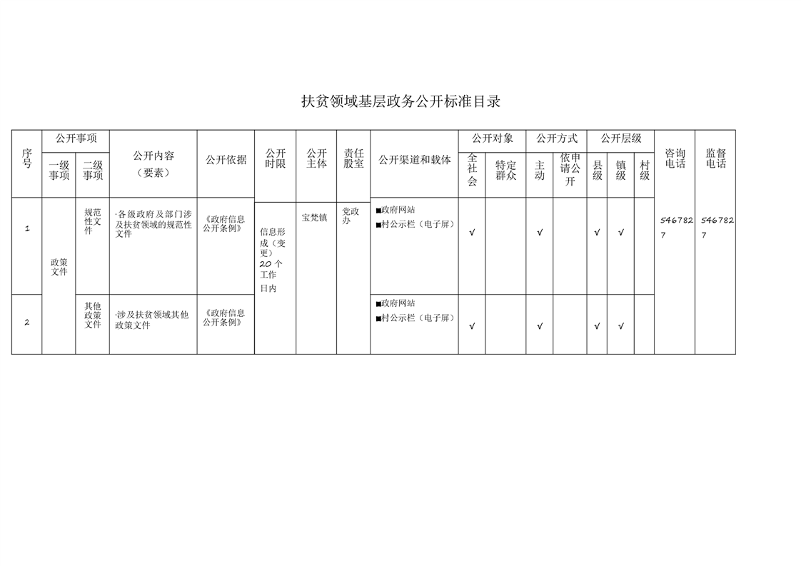 宝梵镇基层政务公开标准目录