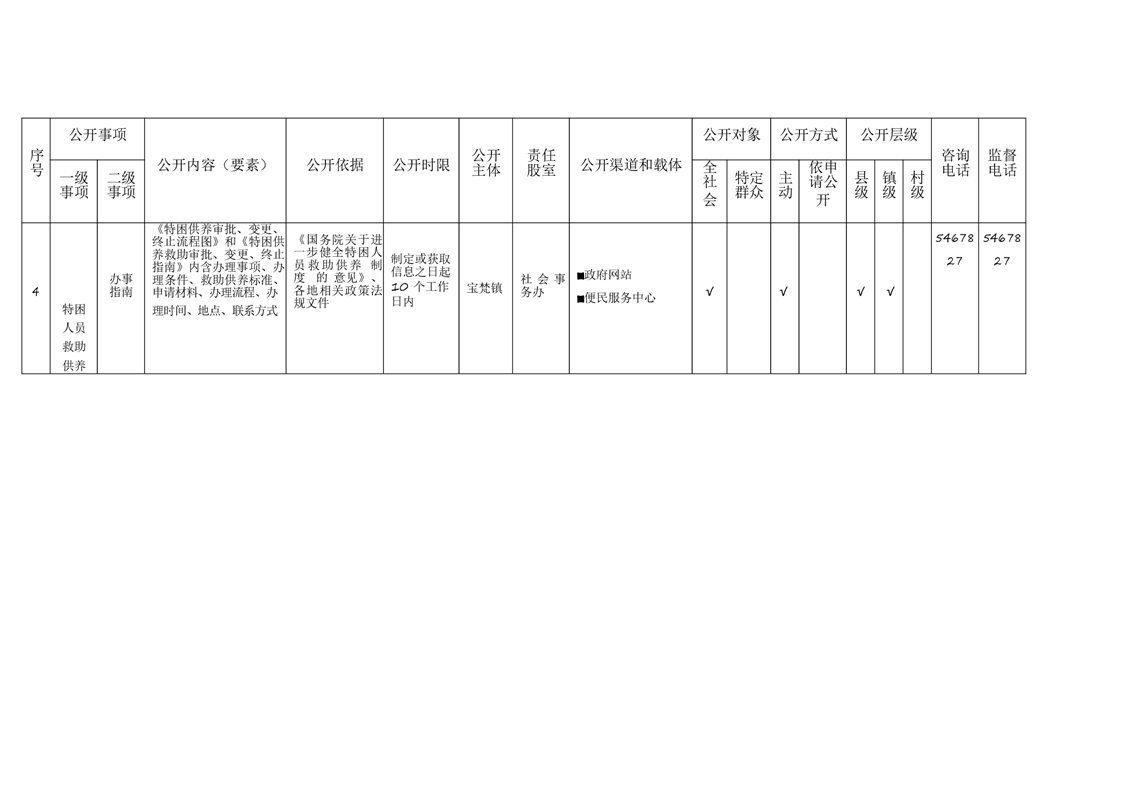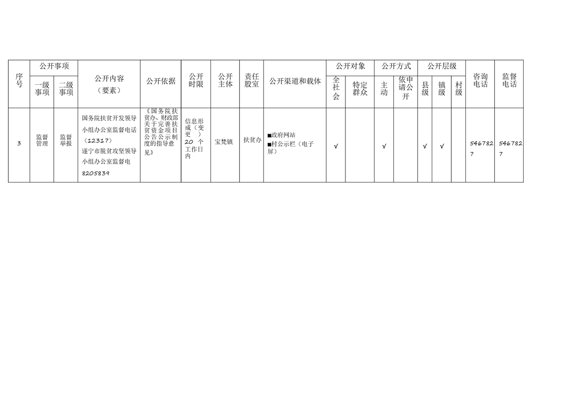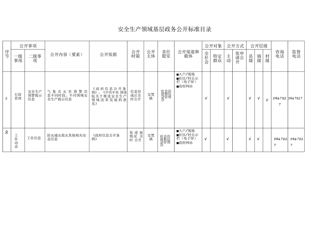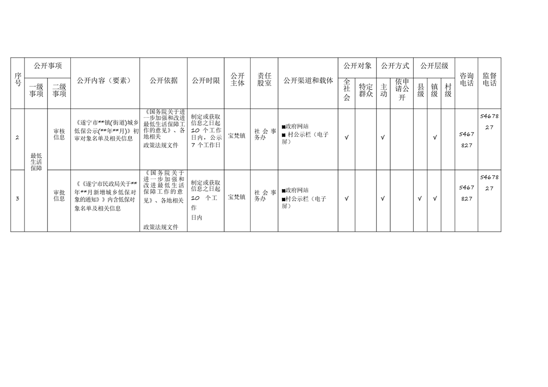 宝梵镇基层政务公开标准目录