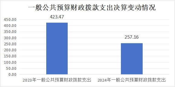 2024年度一般公共预算财政拨款支出257.16万元,占本年支出合计的100%。与2023年度相比,一般公共预算财政拨款支出减少166.31万元,下降39.27%。主要变动原因是项目减少,收入支出降低等。