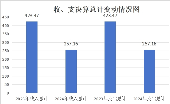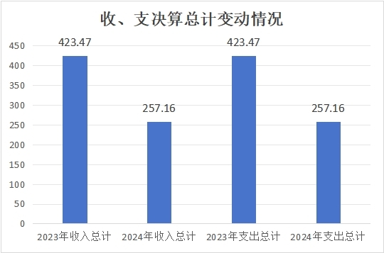 2024年度收、支总计均为257.16万元。与2023年度相比,收、支总计各减少166.31万元,下降39.27%。主要变动原因是项目减少,收入支出降低等。