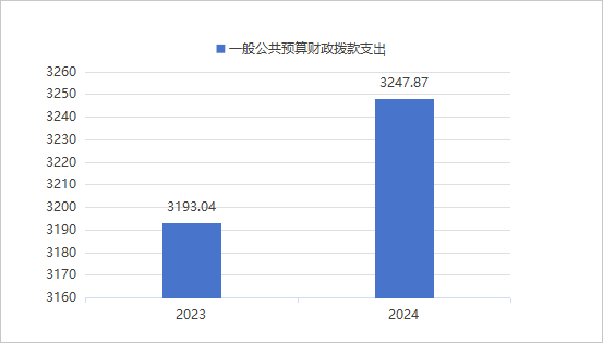 2024年度一般公共预算财政拨款支出3247.87万元,占本年支出合计的100%。与2023年度相比,一般公共预算财政拨款支出增加54.87万元,增长1.71%。主要变动原因是一般行政管理事务、中小企业发展专项支出增加。