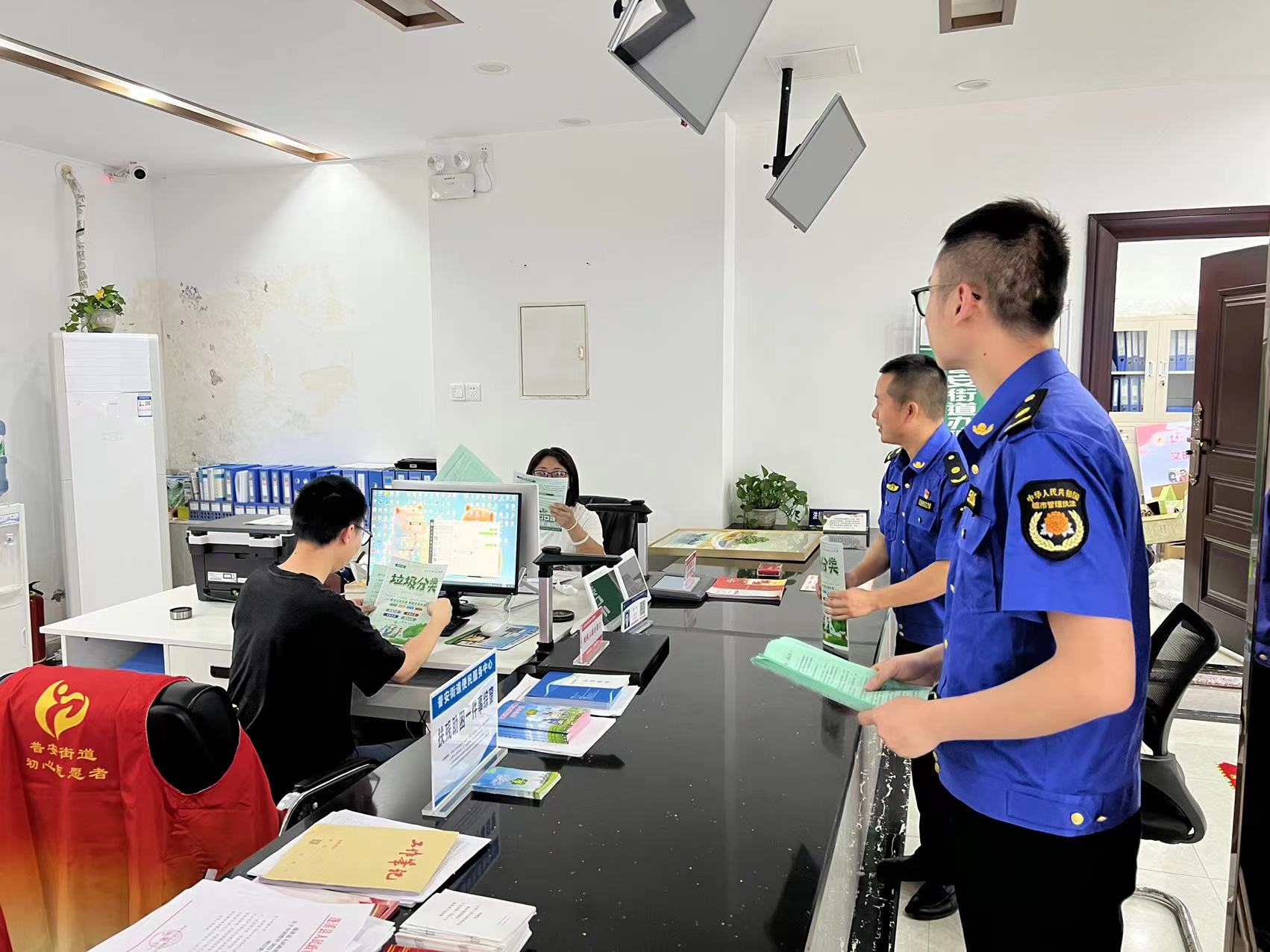 社区作为社区垃圾分类的“前哨站”,社区工作者的垃圾分类水平影响着社区居民的垃圾分类普及率。执法人员把垃圾分类的最新宣传资料张贴在社区宣传栏内,并指导社区工作者、下沉党员、志愿者等如何向居民开展入户宣传,增强社区居民的垃圾分类意识,营造全民共建共治的良好氛围。