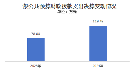 2024年度一般公共预算财政拨款支出119.49万元,占本年支出合计的100%。与2023年度相比,一般公共预算财政拨款支出增加41.46万元,增长53.13%。主要变动原因是人员调动。