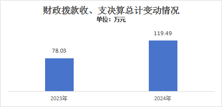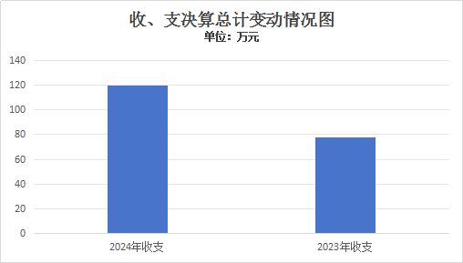 2024年度收、支总计均为119.49万元。与2023年度相比,收、支总计各增加41.46万元,增长53.13%。主要变动原因是人员调动。