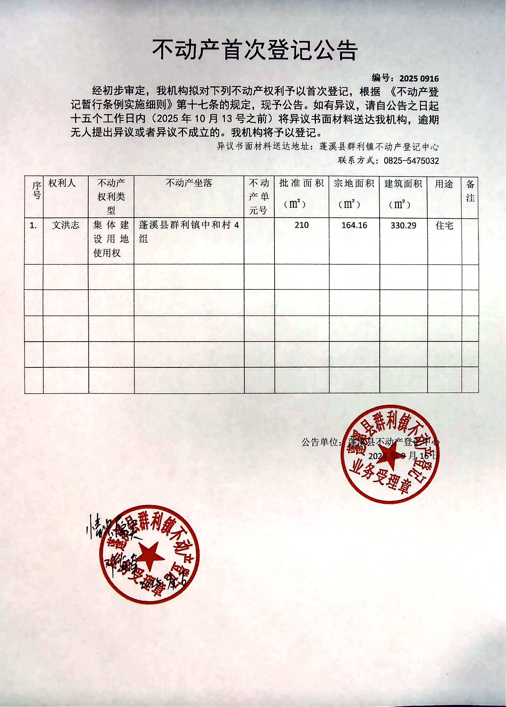 首次登记公告(文洪志)