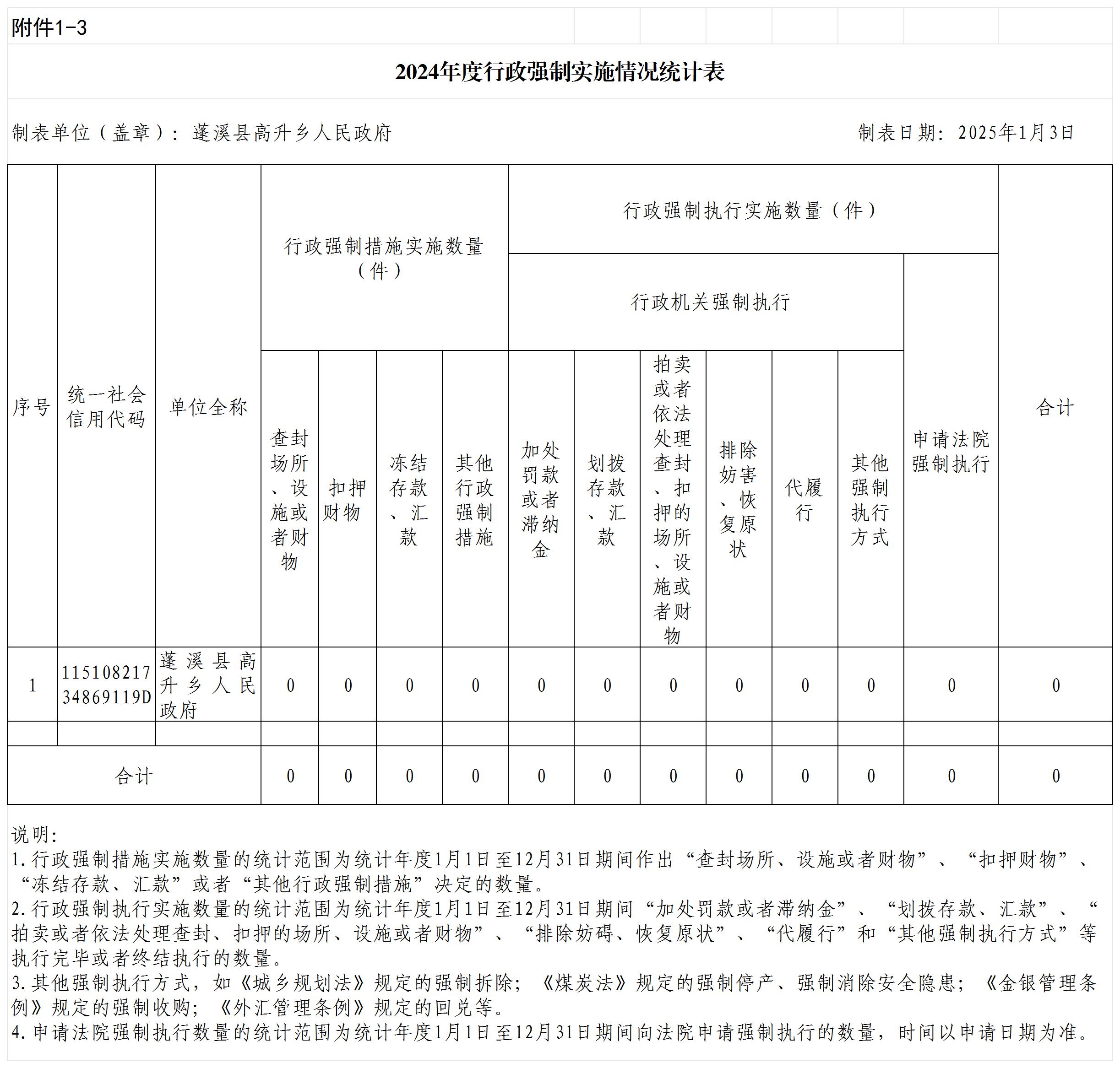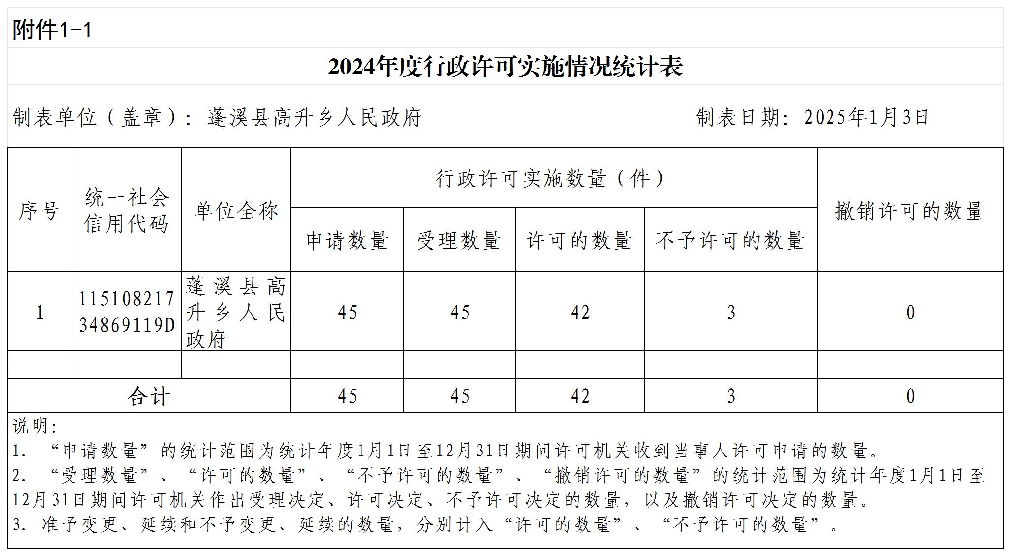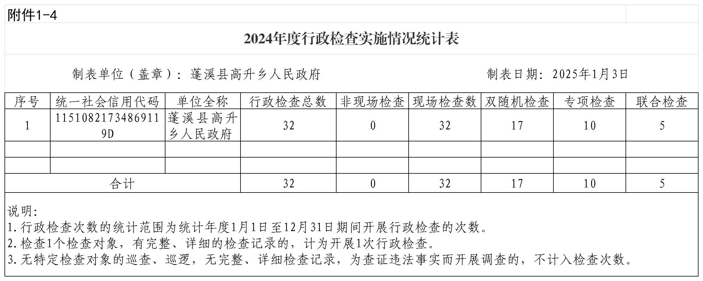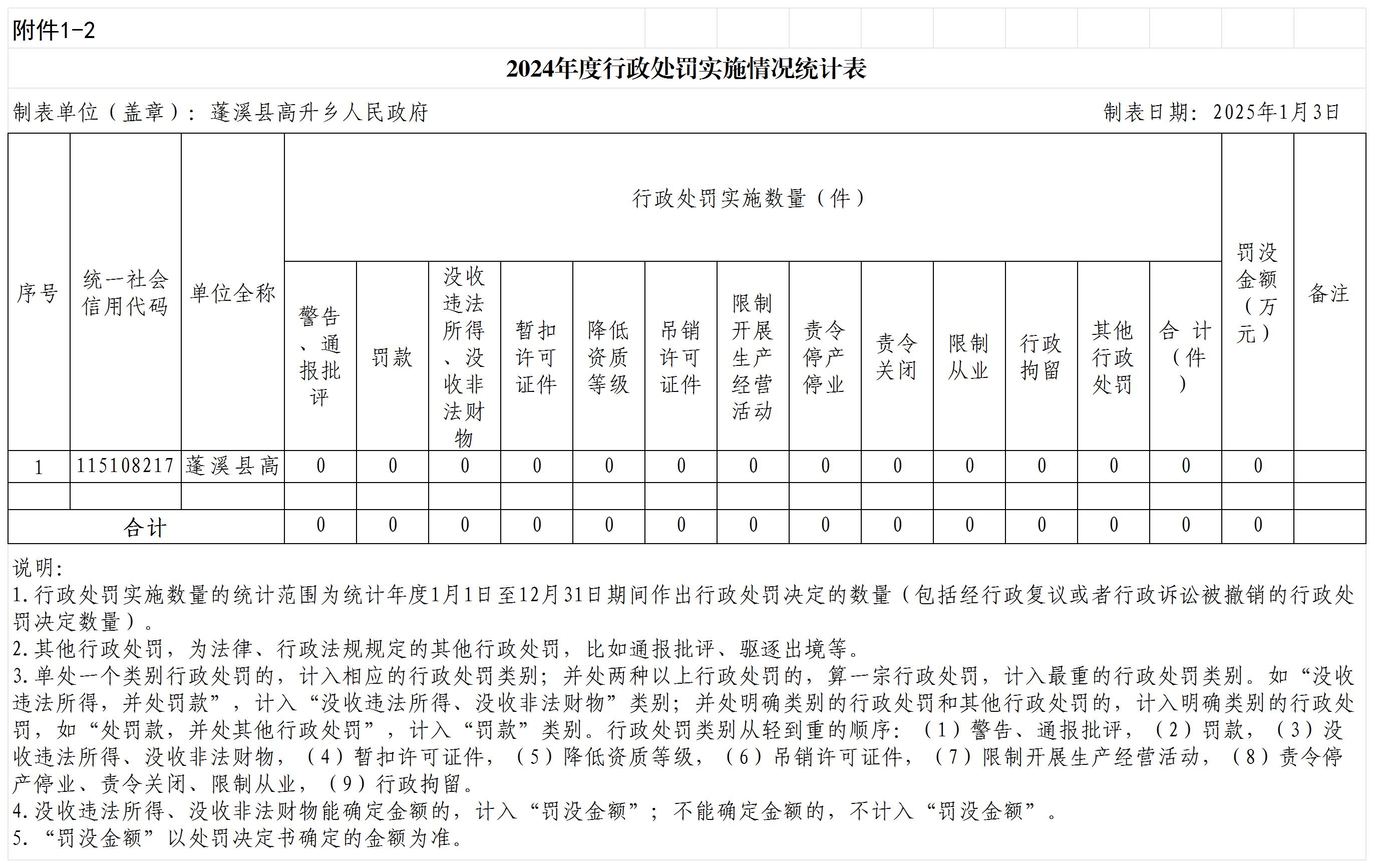 高升乡2024年行政许可、行政处罚、行政强制、行政检查实施情况公示表