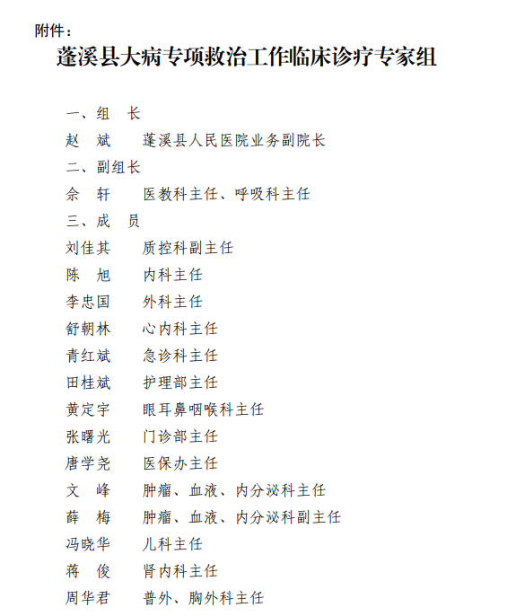 附件:蓬溪县大病专项救治工作临床诊疗专家组