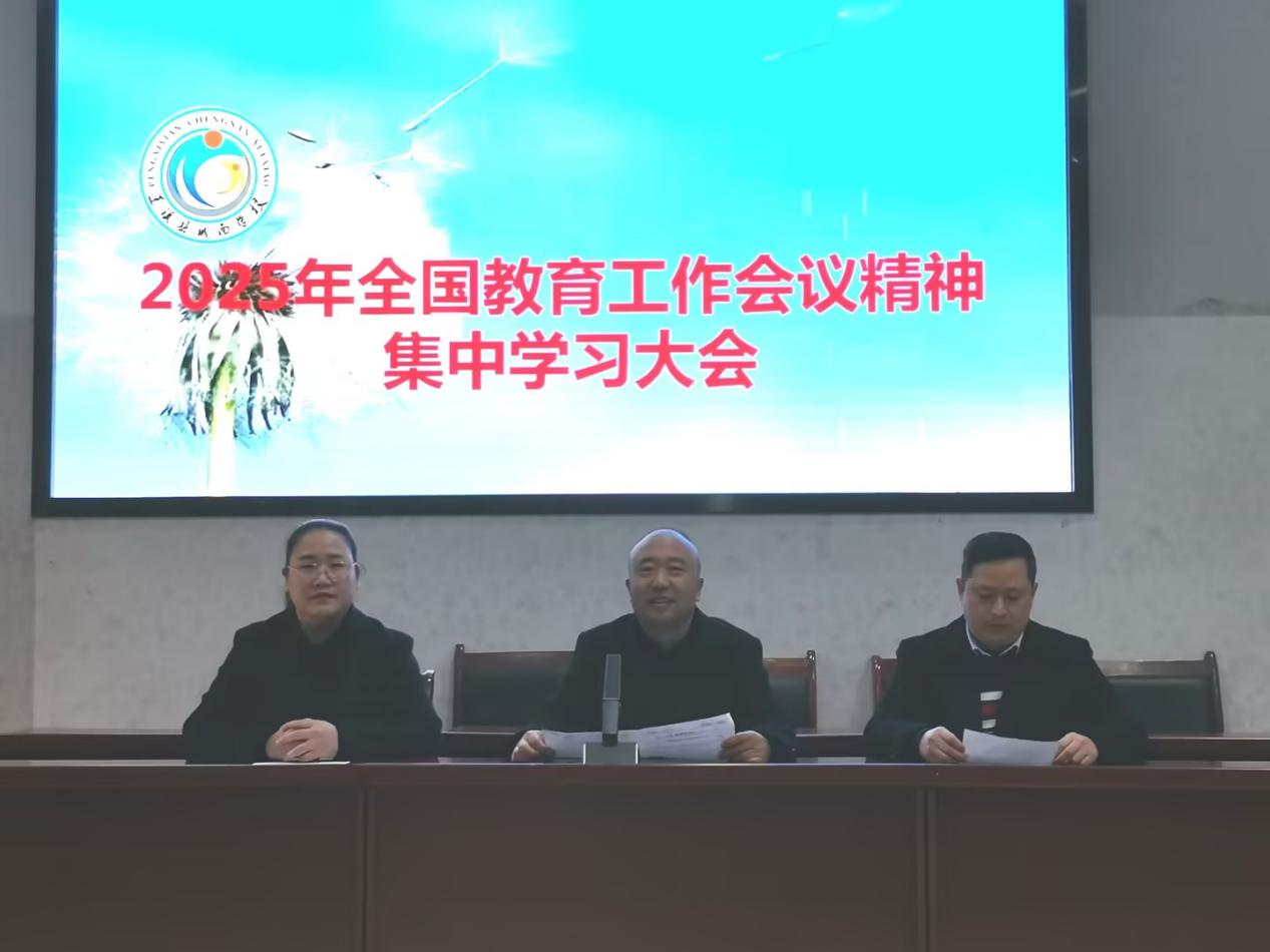 2025年1月18日,蓬溪县城南学校利用学年工作总结会议的时机,安排专门的时段,组织全校近120名教职工,集中学习2025年全国教育工作会议精神。学习活动由城南学校支部书记、校长申毅主持。