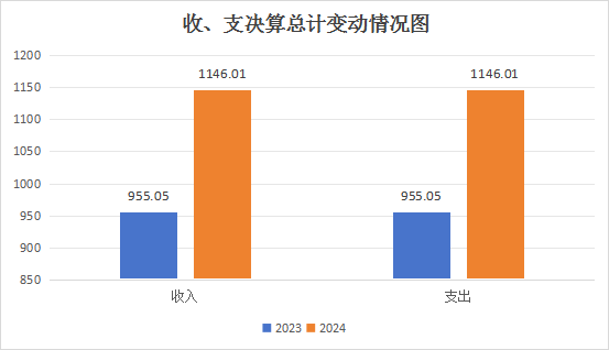 2024年度收、支总计均为1146.01万元。与2023年度相比,收、支总计各增加190.96万元,增加20%。主要变动原因是2023年基层组织活动和公共服务运行经费-县级项目资金增加。