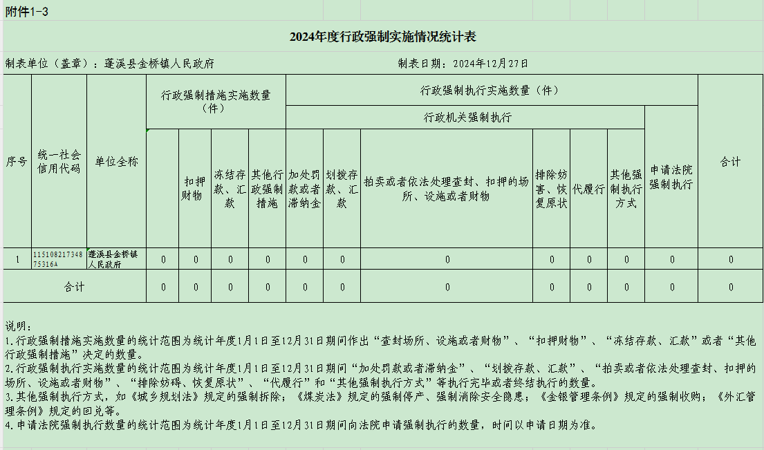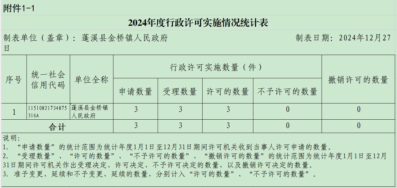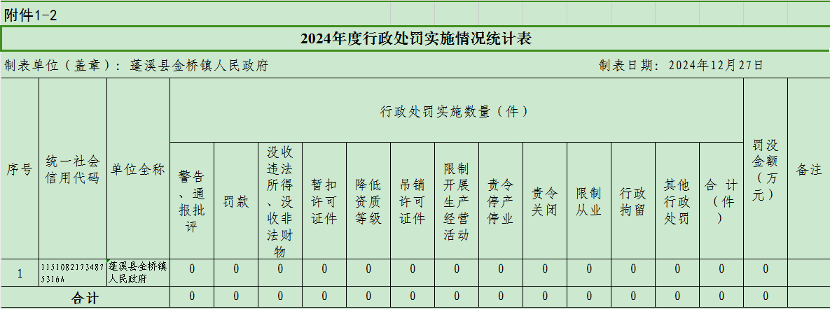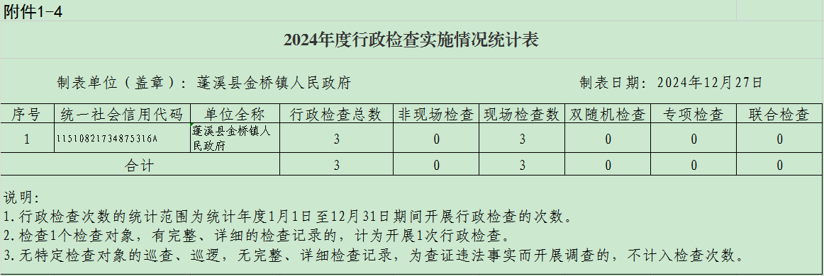 金桥镇行政许可、行政处罚、行政强制、行政检查实施情况统计公示表