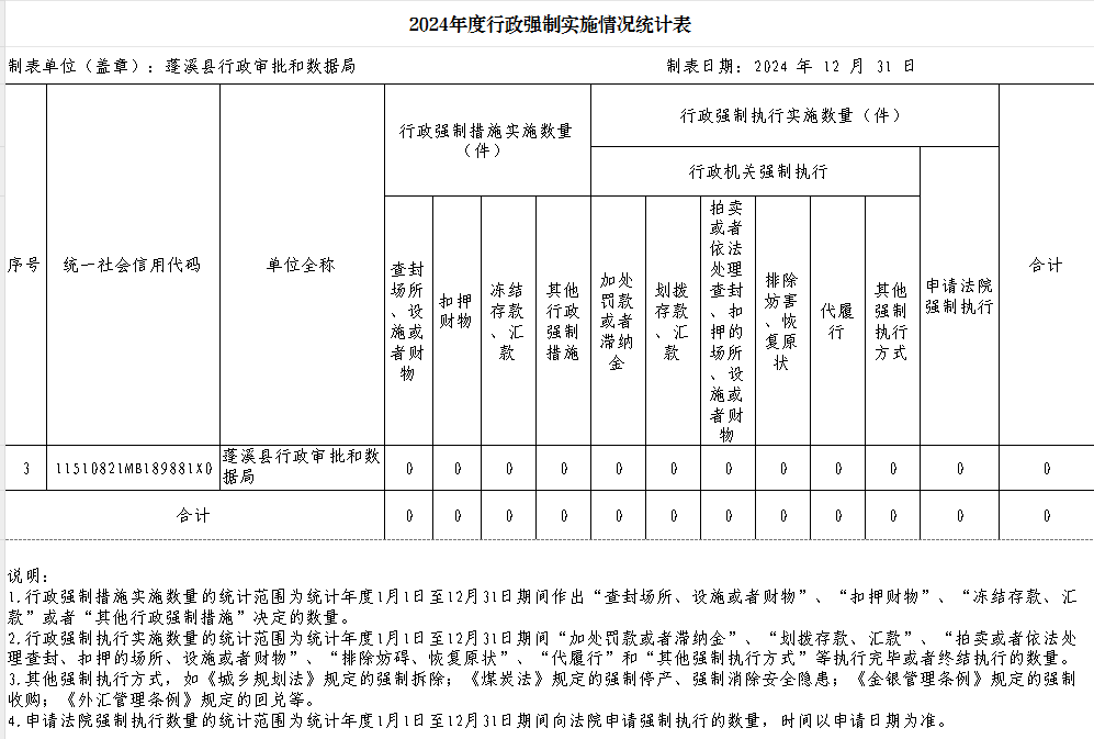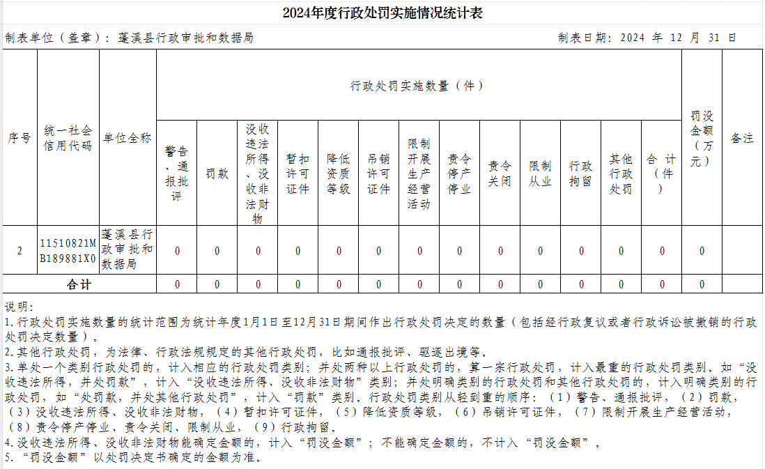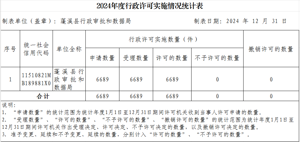 县行政审批和数据局2024年度行政许可、行政处罚、行政强制、行政检查实施情况公示