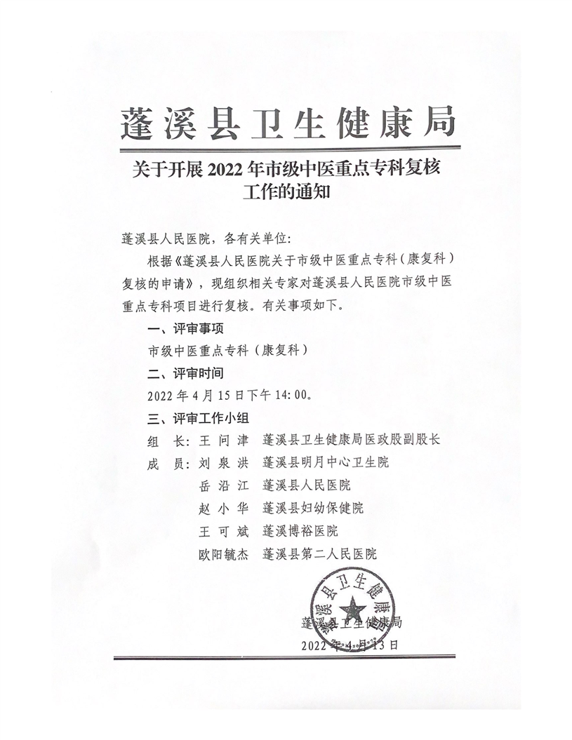 关于开展 2022 年市级中医重点专科复核工作的通知