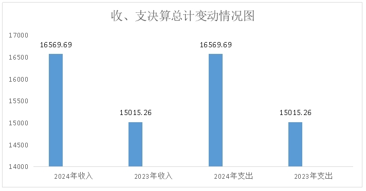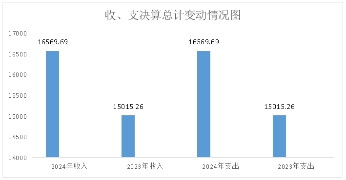 2024年度部门总收入16569.69万元,支出总计16569.69万元,与2023年相比收入增加1554.43万元,增加10.35%,支出增加1554.43万元,增加10.35%。