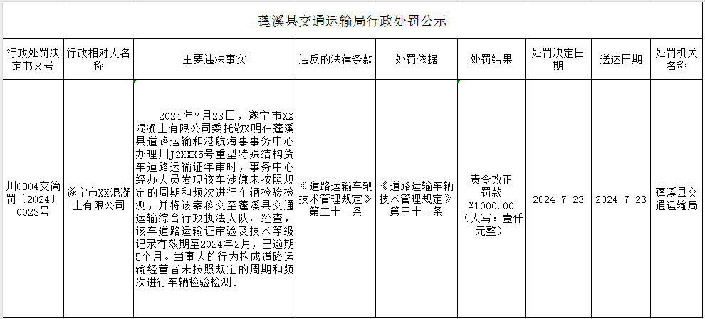 蓬溪县交通运输局行政处罚公示
