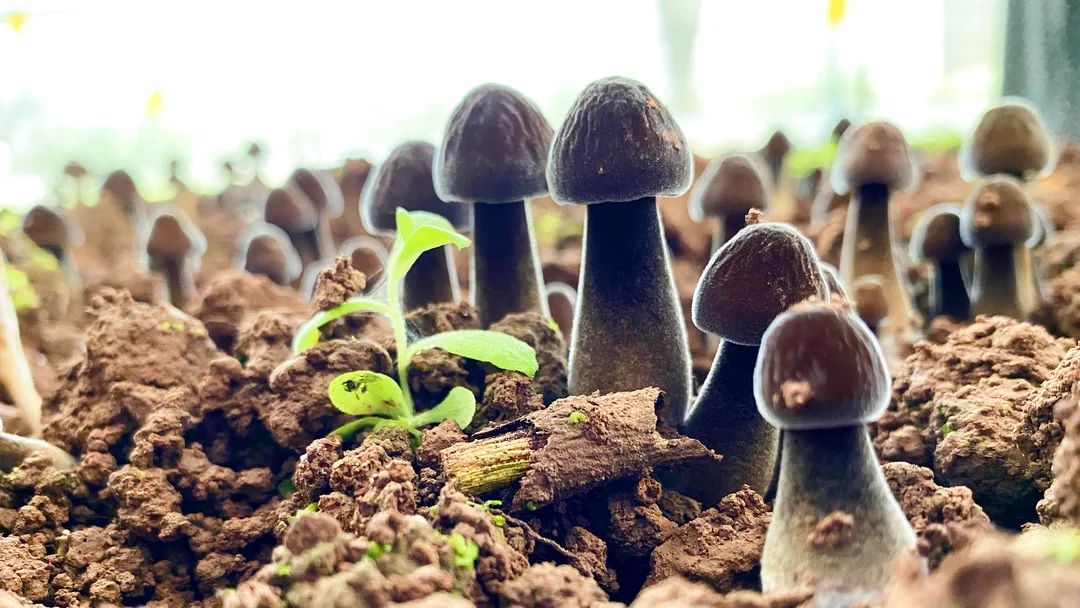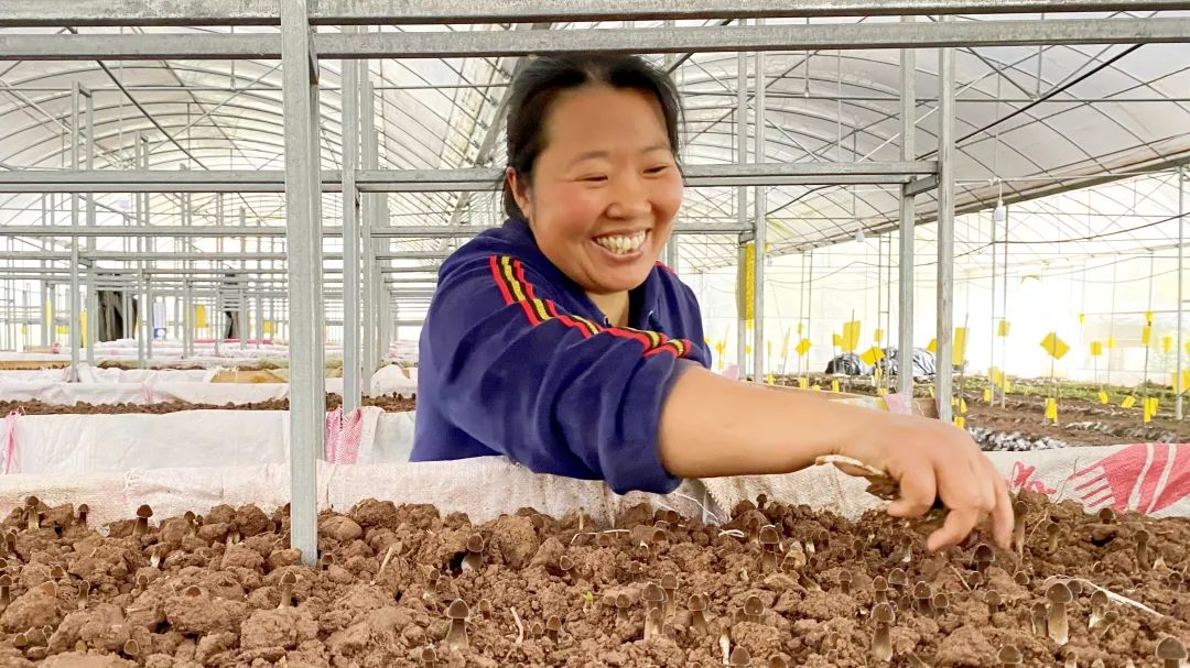 看着长势和品质喜人的黑皮鸡枞菌,菌菇基地产业技术人员蒋小娟很高兴。