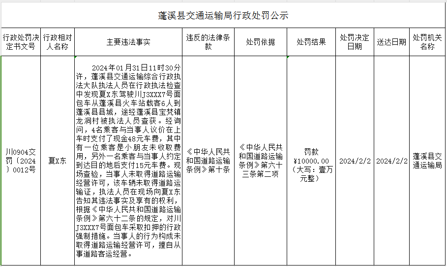 蓬溪县交通运输局行政处罚公示