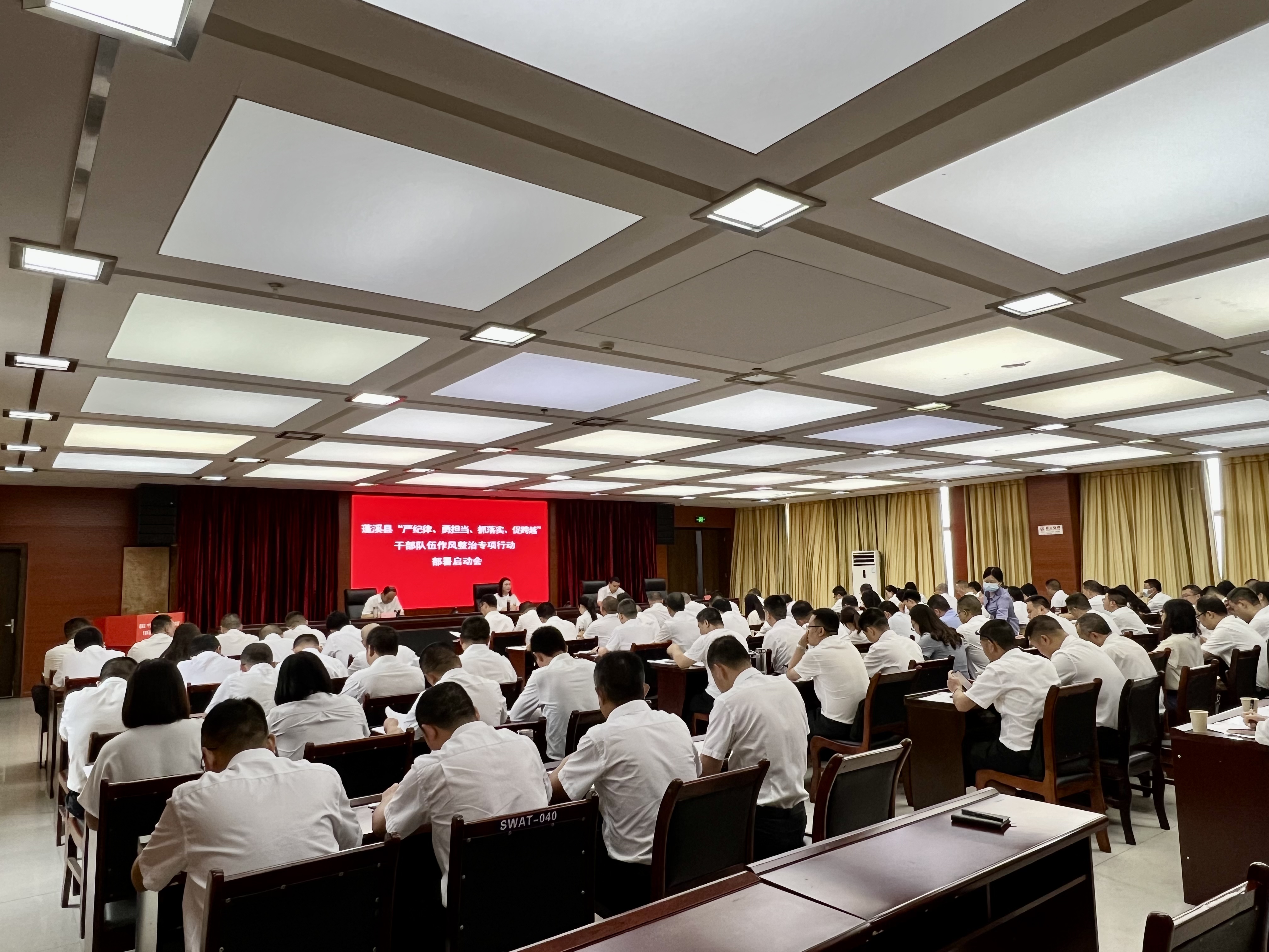 6月8日上午,全县“严纪律、勇担当、抓落实、促跨越”干部队伍作风整治专项行动部署启动会召开。县委副书记、专项行动领导小组副组长王莉出席并讲话,县委常委、宣传部部长、专项行动领导小组副组长赵锋主持,县委常委、县委办主任、专项行动领导小组副组长邓涛出席。专项行动领导小组及各专项工作组成员,各乡镇(街道、园区)、各部门主要负责同志参加。
