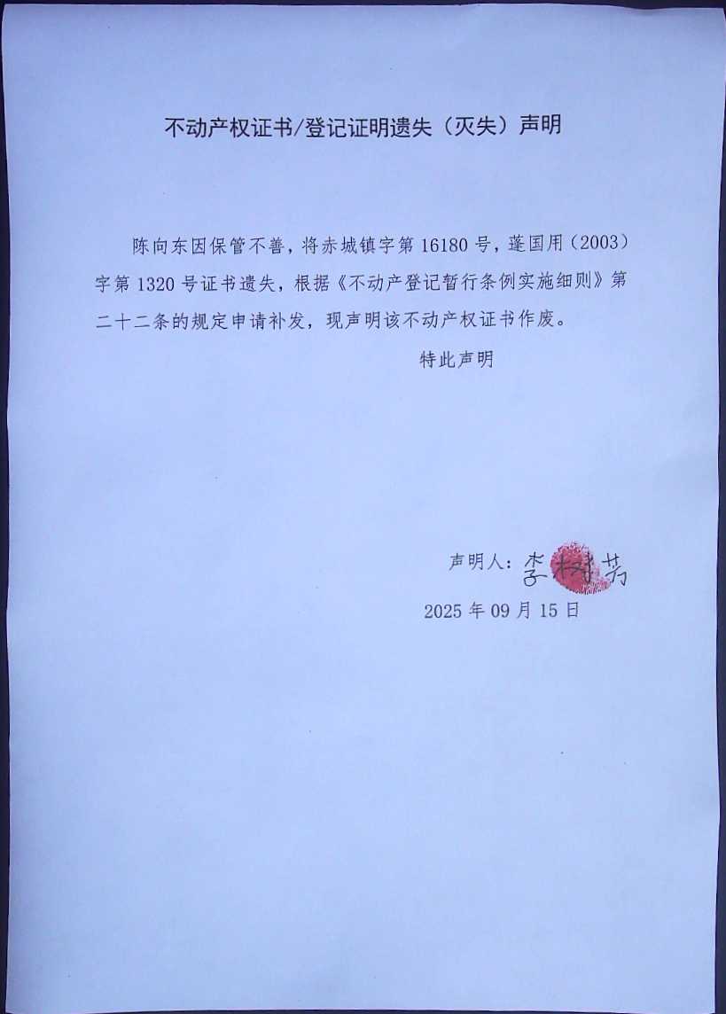 遗失补证公告(李树芳)