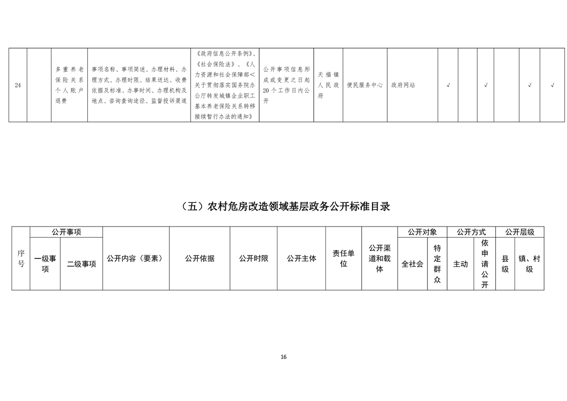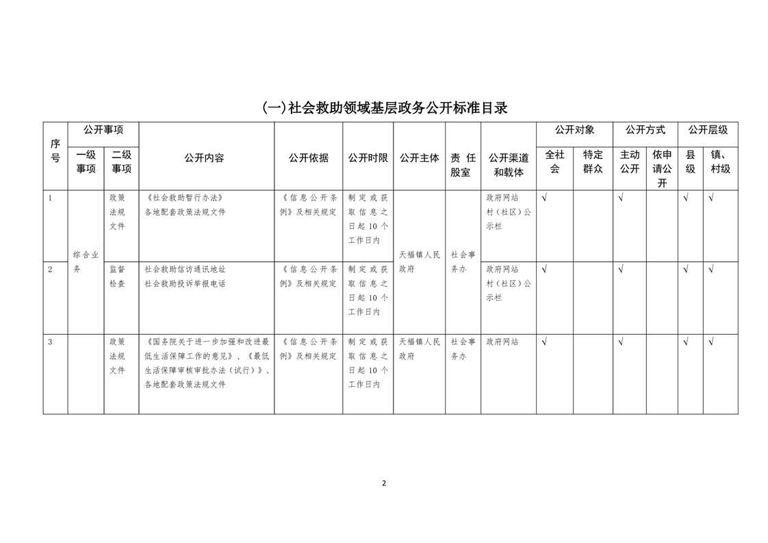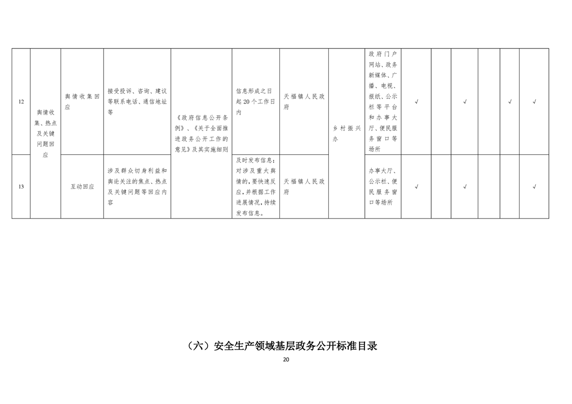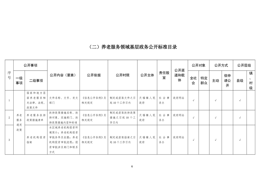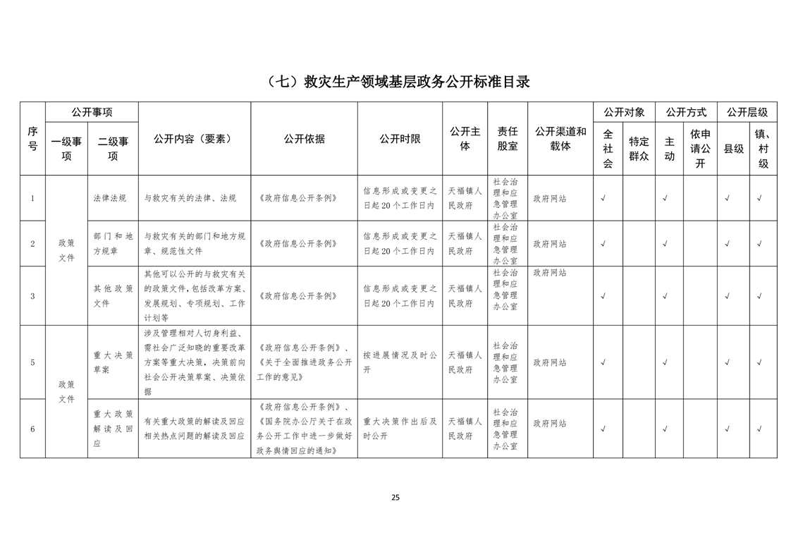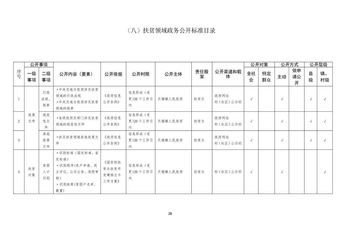 天福镇基层政务公开标准目录
