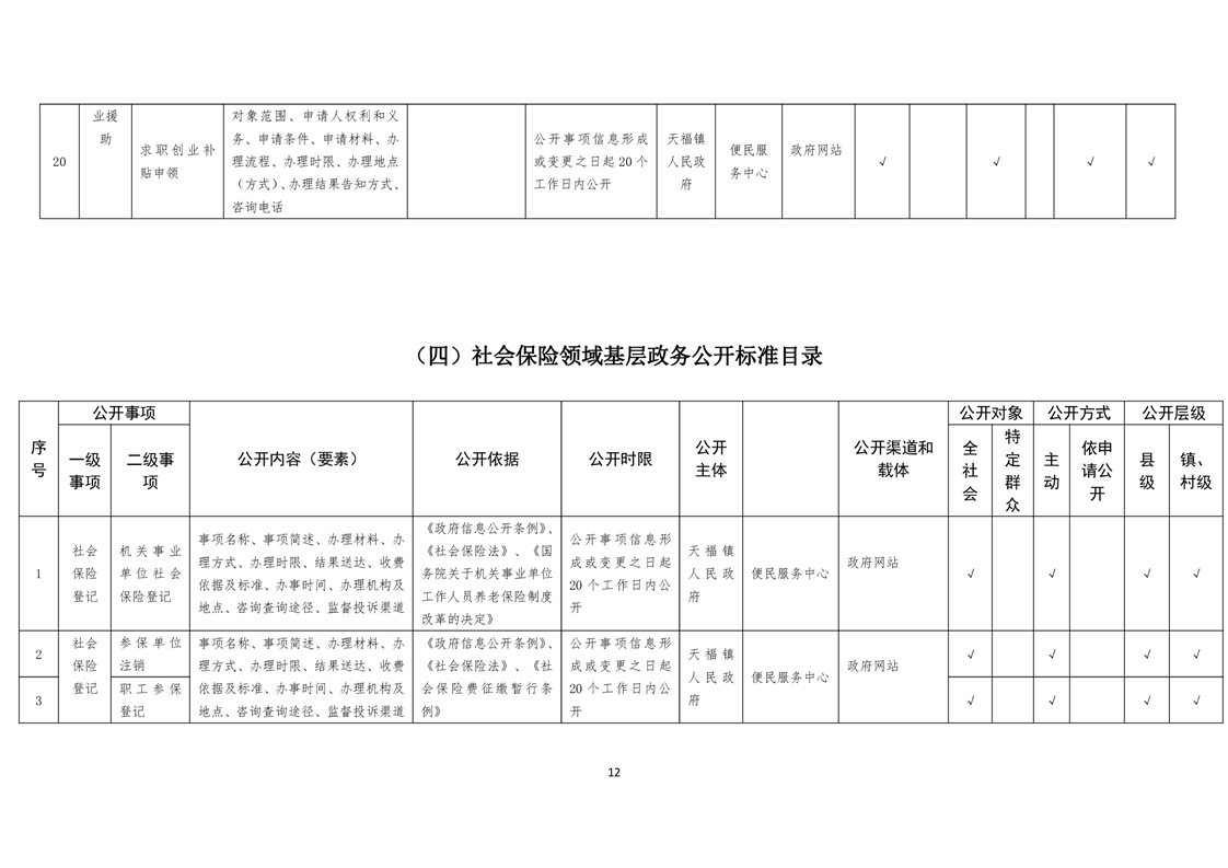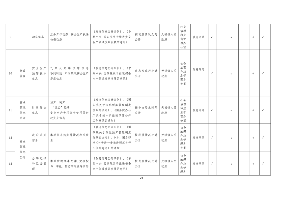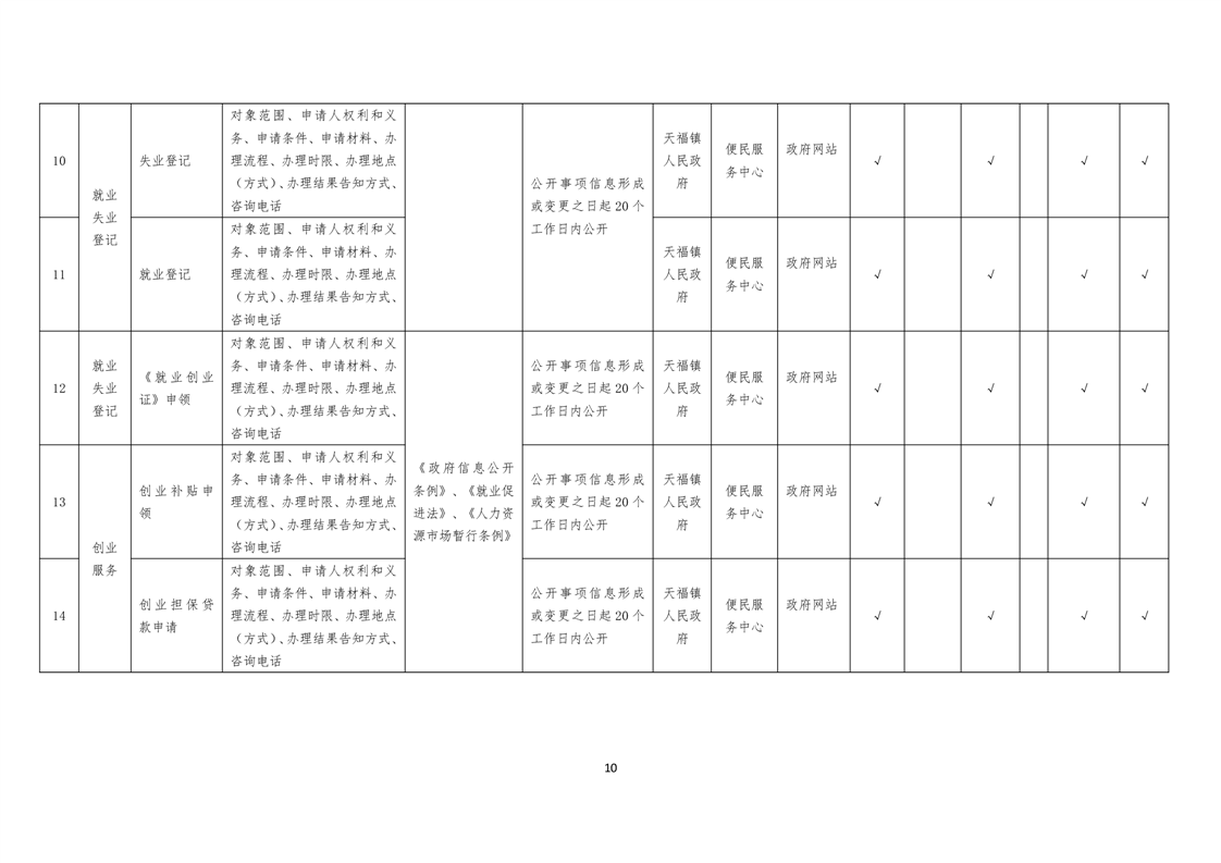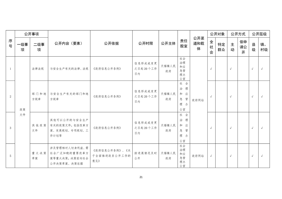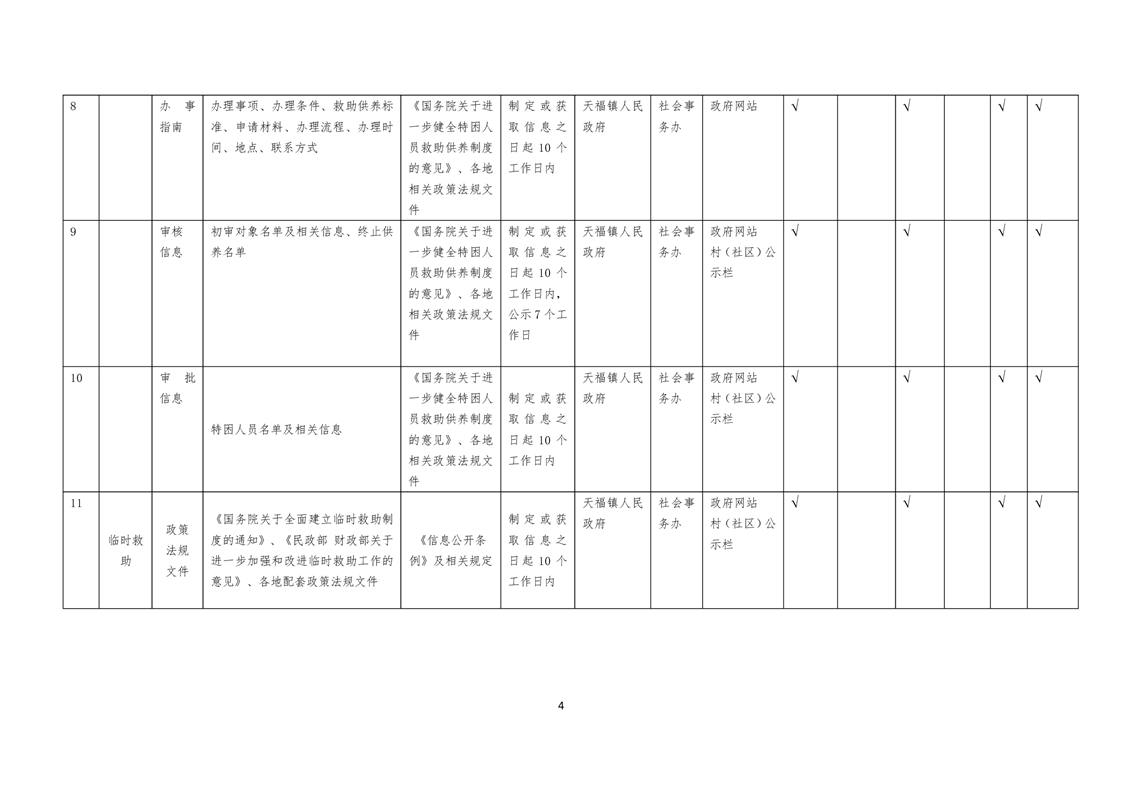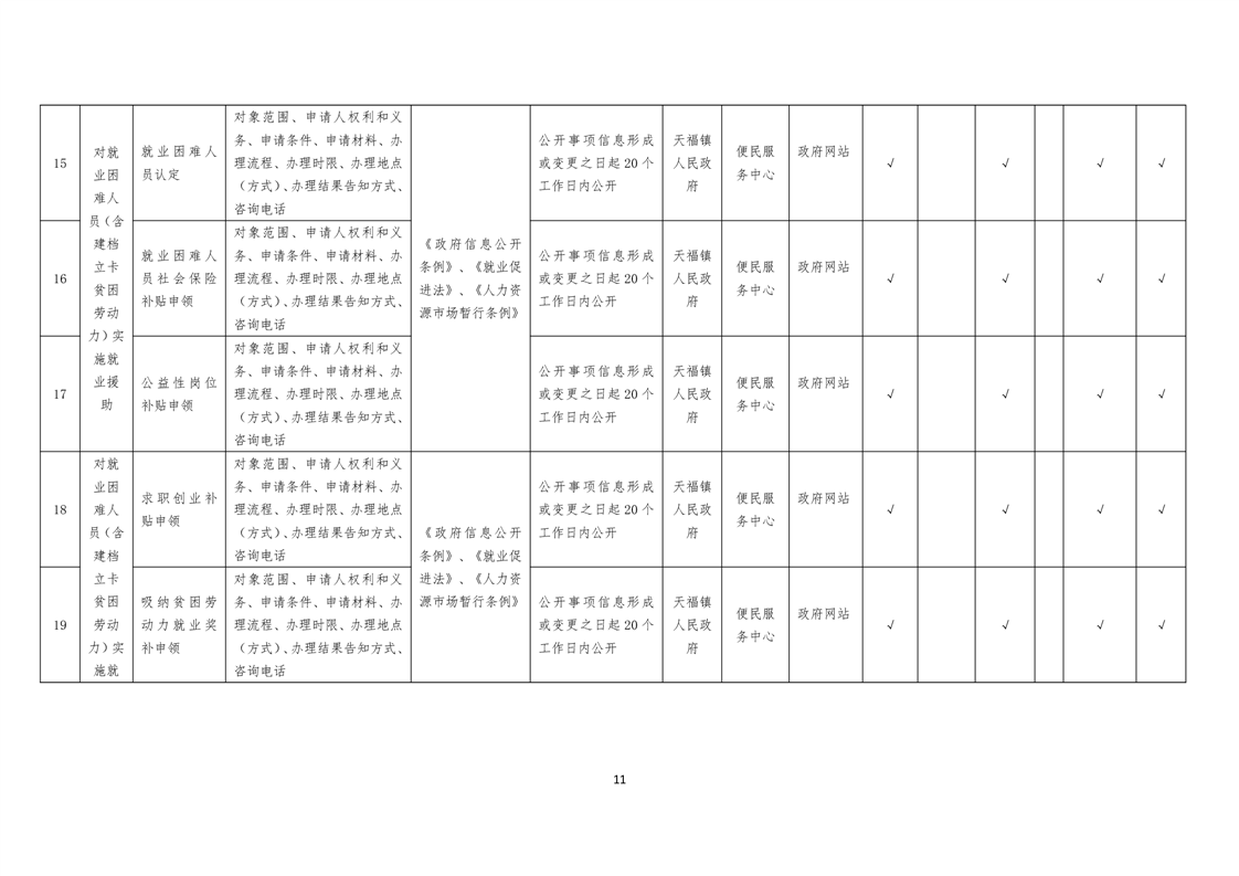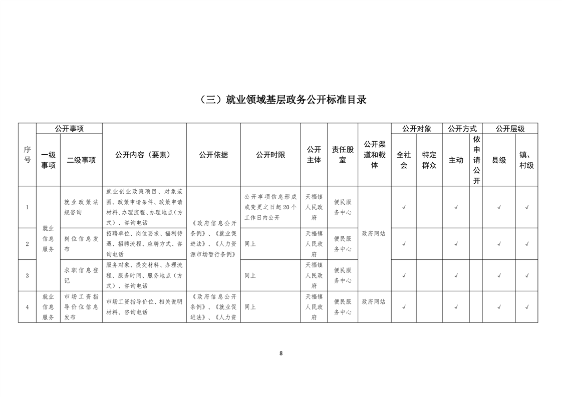 天福镇基层政务公开标准目录