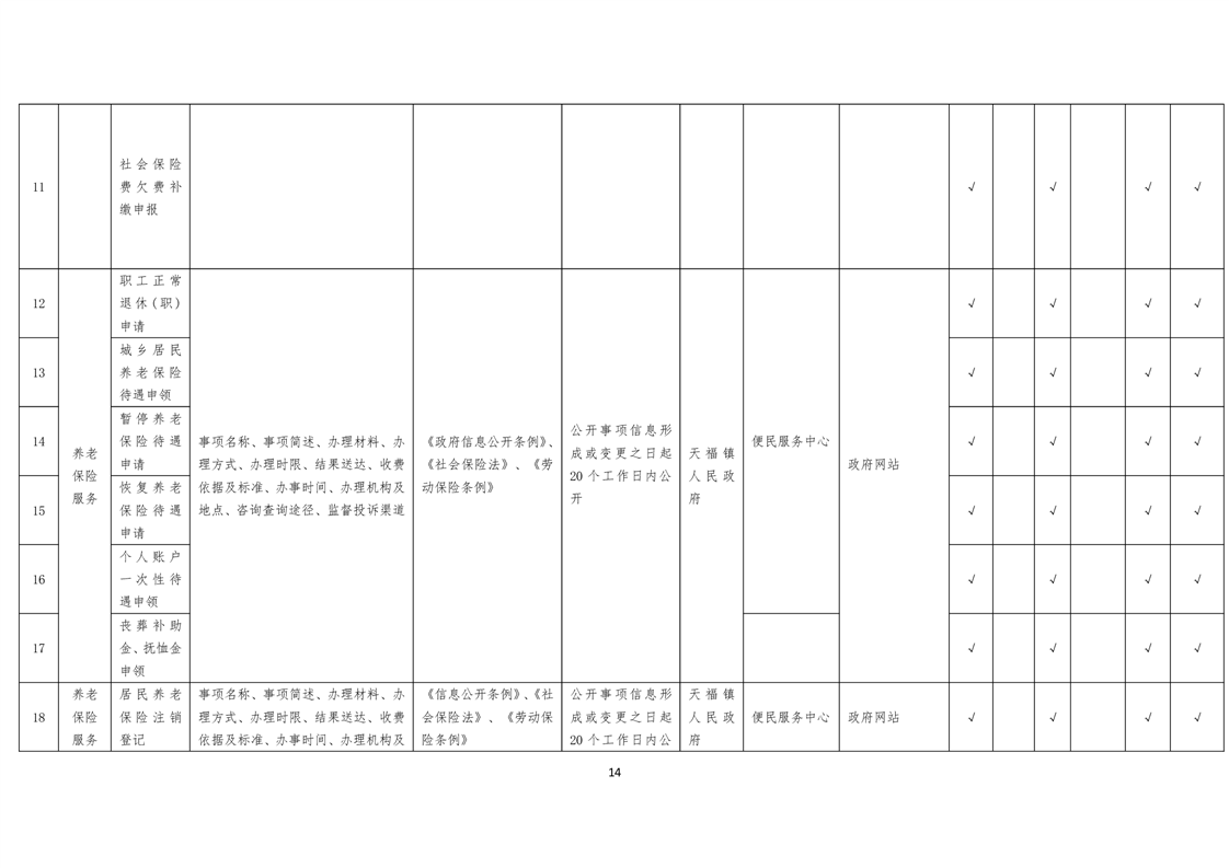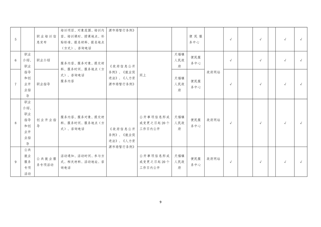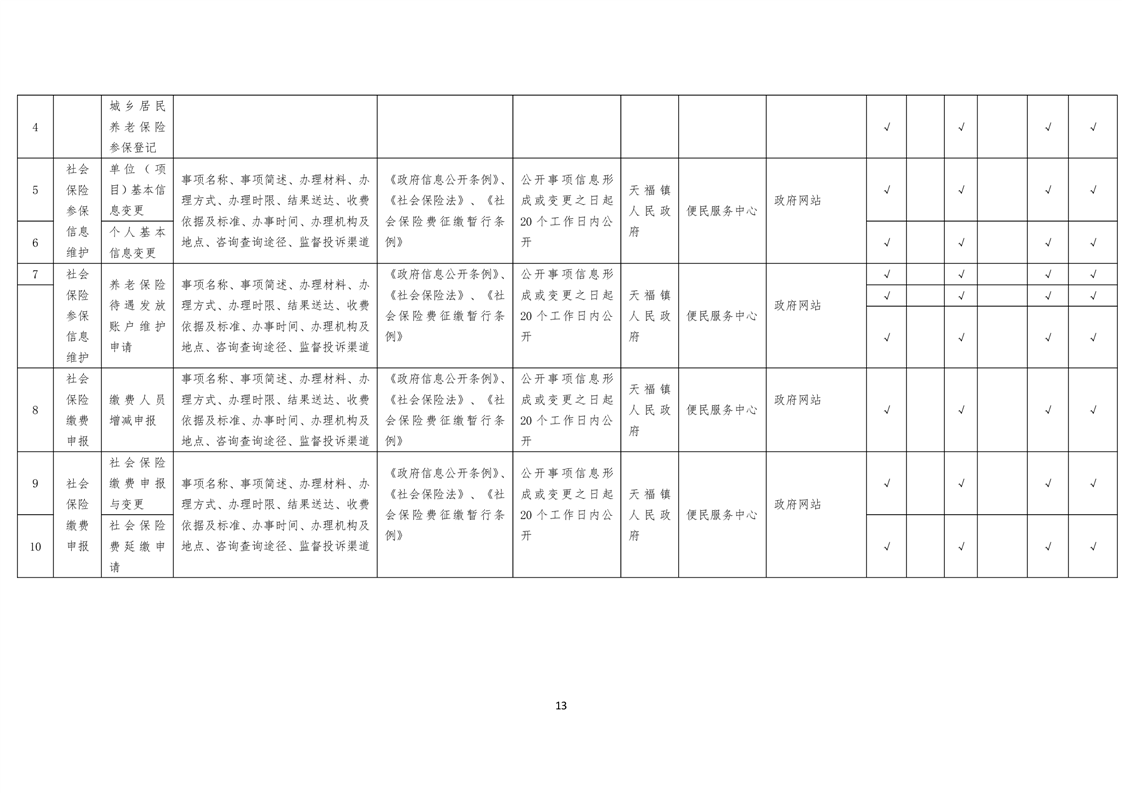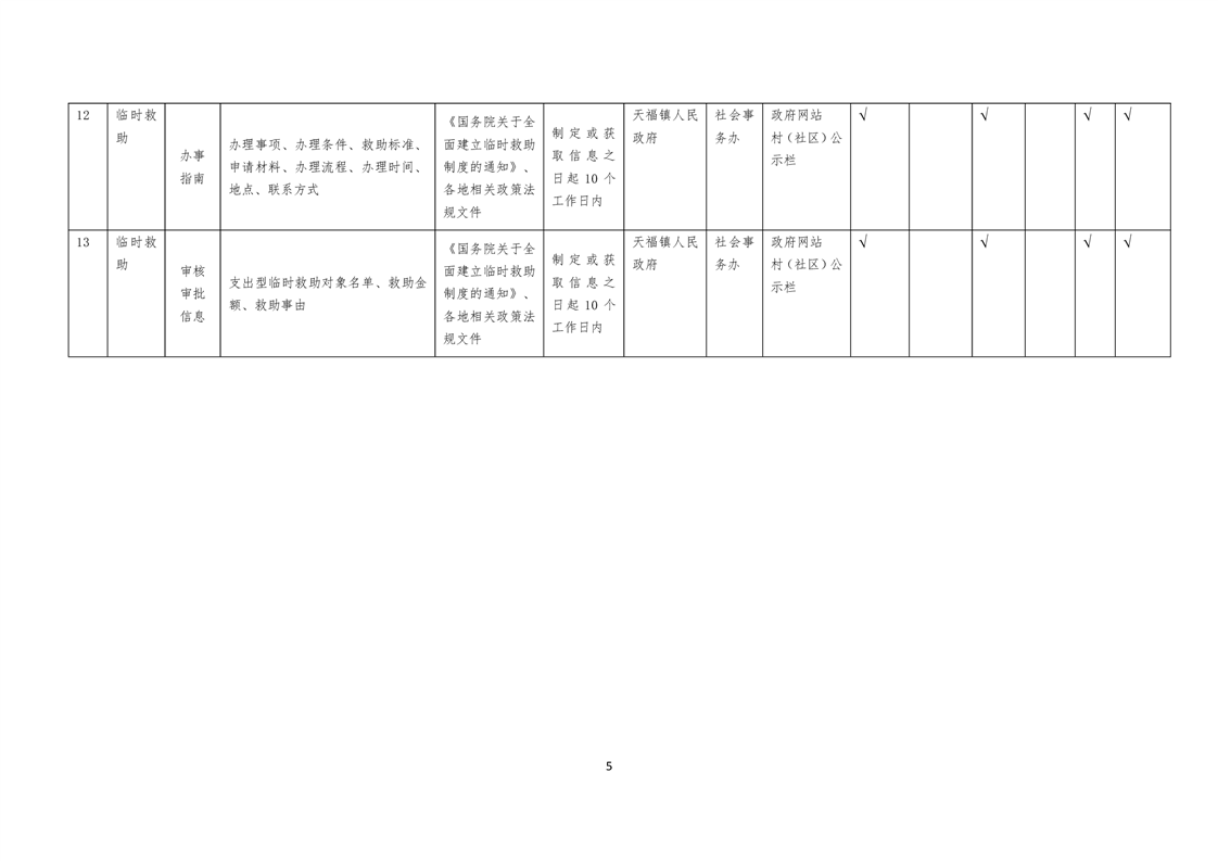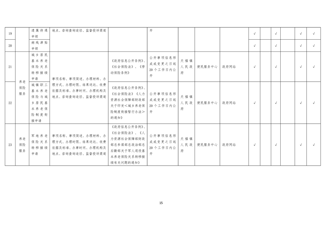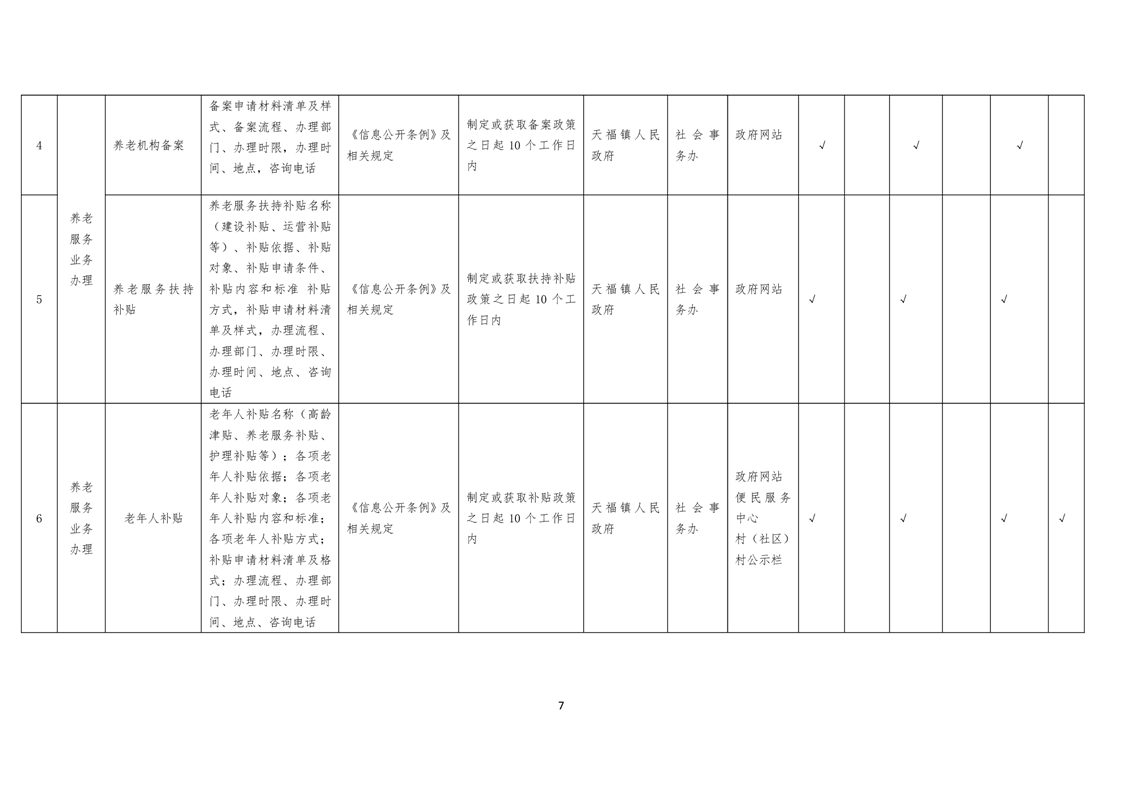 天福镇基层政务公开标准目录