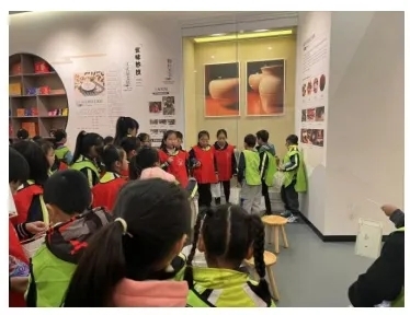 研学伊始,同学们在研学导师的带领下来到非遗馆,了解了道缘豆豉、熨斗糕、洞经音乐和高坪土陶等蓬溪非遗。同学们认真听讲,对家乡非遗产生了浓厚的兴趣,有的更是主动当起了“小讲解员”。