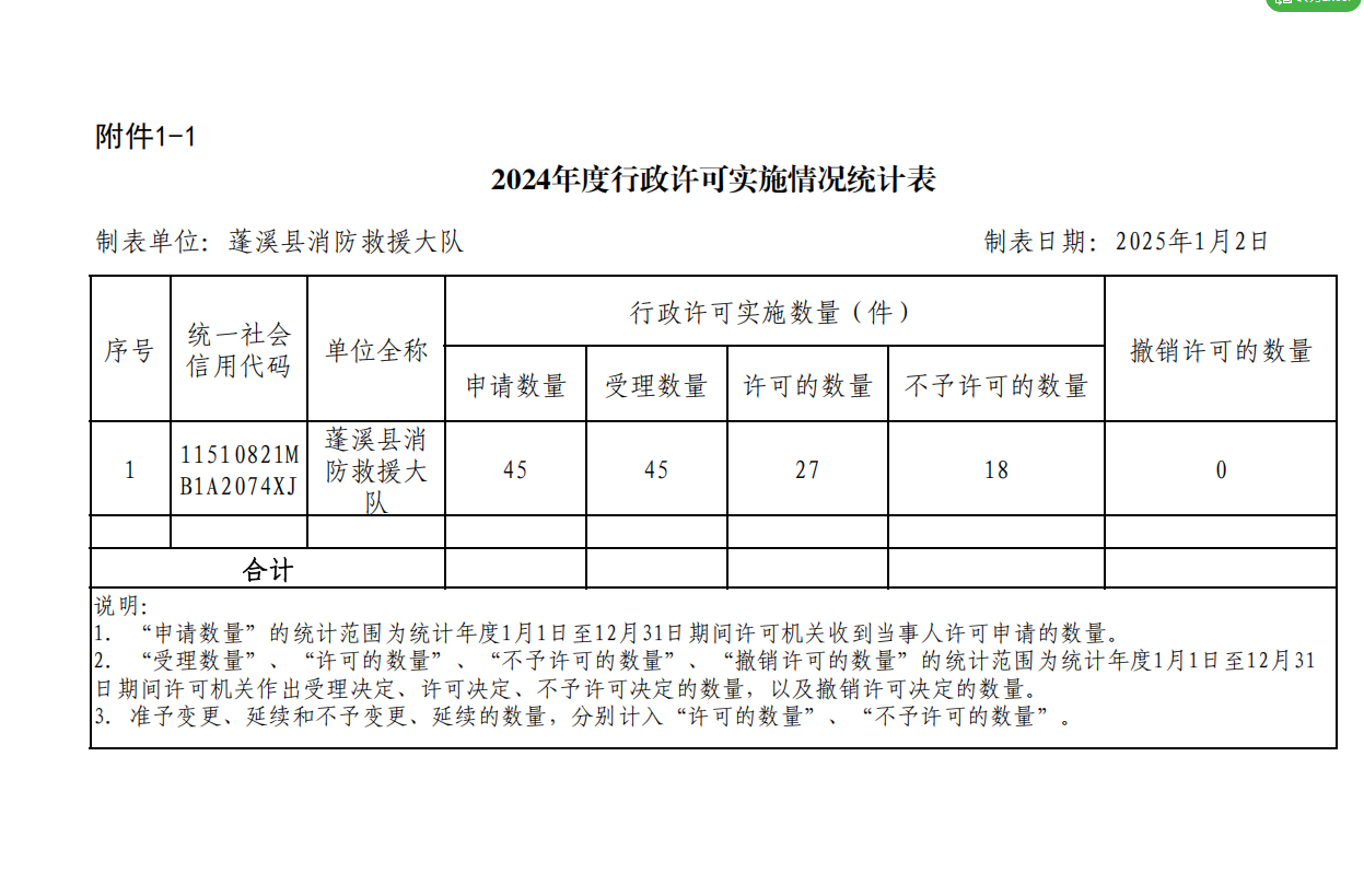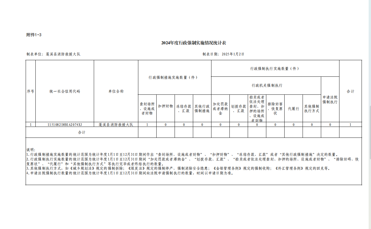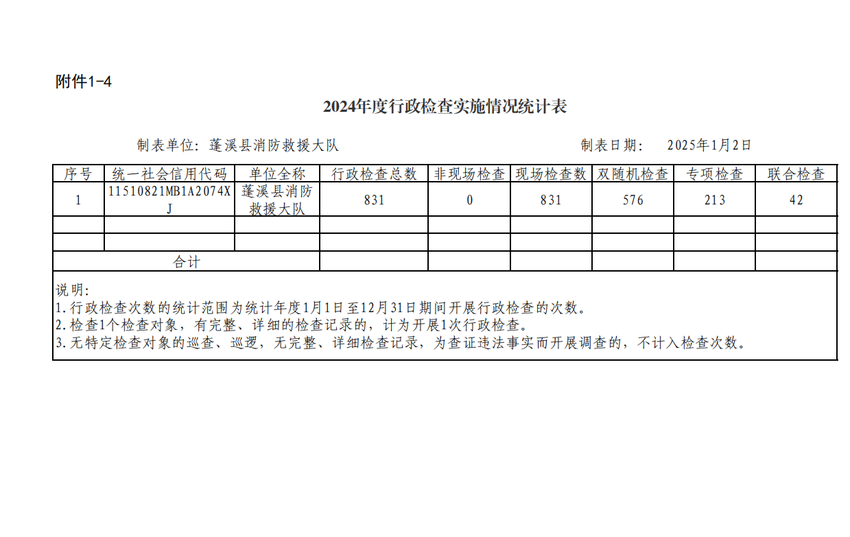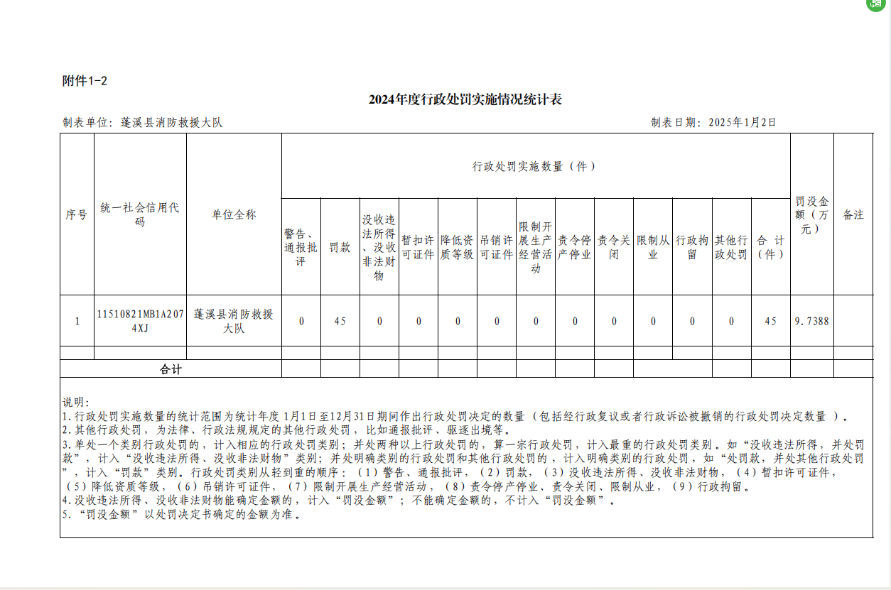 2024年度蓬溪县消防救援大队实施行政许可、行政处罚、行政强制和行政检查等情况