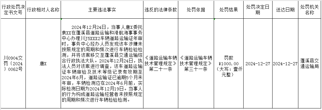 蓬溪县交通运输局行政处罚公示