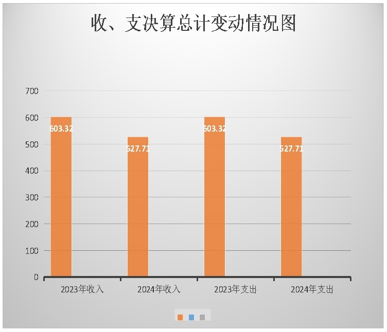 2024年度收、支总计均为527.71万元。与2023年度相比,收、支总计各减少75.61万元,下降12.53%。主要变动原因是1、生均办公费减少;2、减少了课后服务费用。