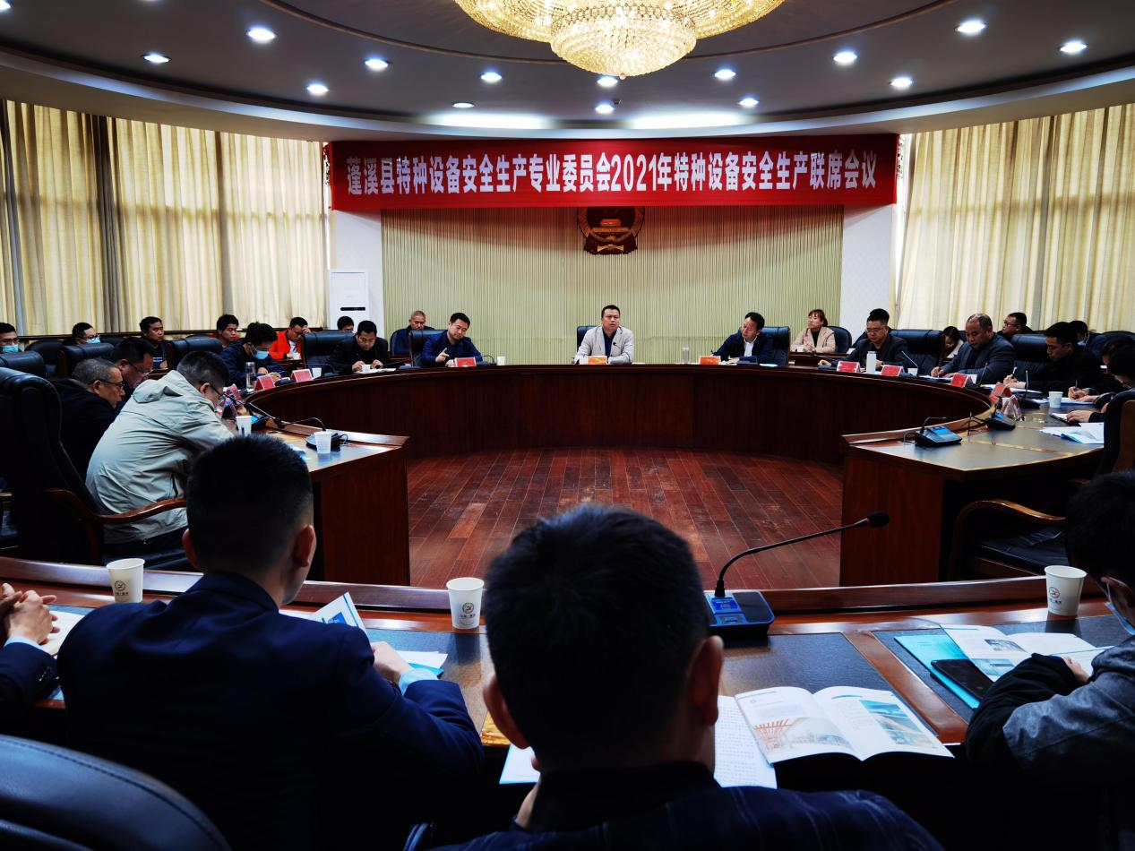 近日,2021年特种设备安全生产专业委员联席会议在县政府常务会议室召开。遂宁市市场监督管理局安全总监郭太、副县长刘定华出席会议并讲话。蓬溪县市场监督管理局局长唐清平主持会议。县特种设备安全工作联席会议各成员单位负责同志、县市场监督管理局相关股室负责人、电梯维保单位负责人参加会议。