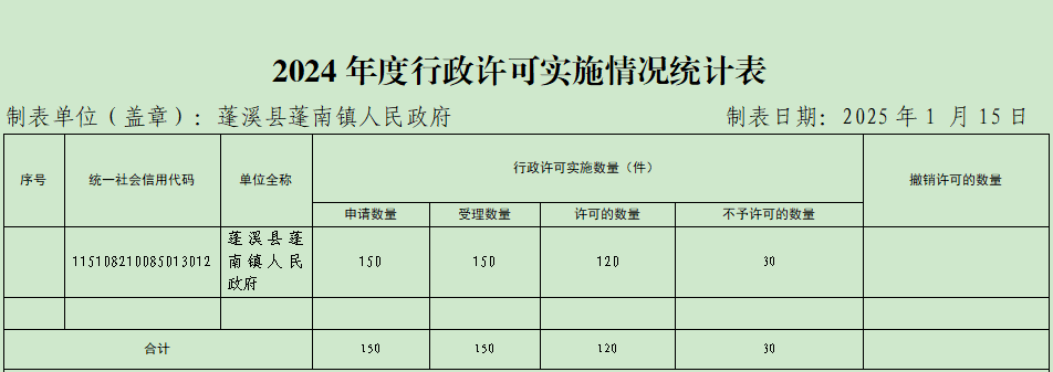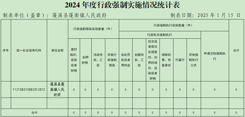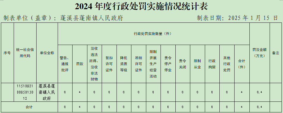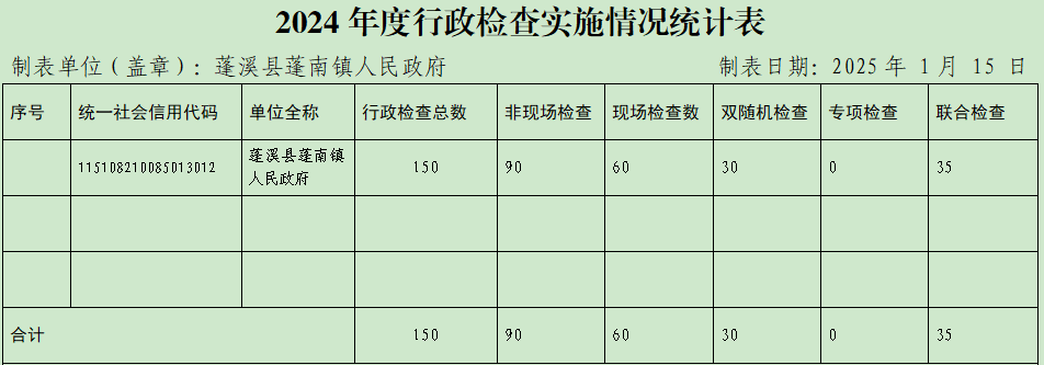 2024年度蓬溪县蓬南镇行政许可、行政处罚、行政强制和行政检查实施情况统计公示表