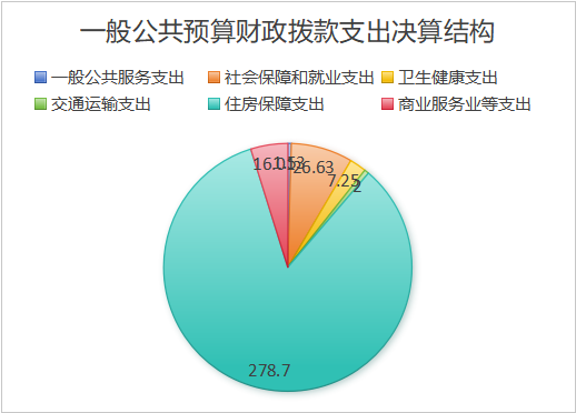 2024年度一般公共预算财政拨款支出332.12万元,主要用于以下方面:一般公共服务支出1.53万元,占4.6%;社会保障和就业支出26.63万元,占8.02%;卫生健康支出7.25万元,占2.15%;交通运输支出2万元,占0.6%;商业服务业等支出278.7万元,占83.92%;住房保障支出16.01万元,占4.82%。