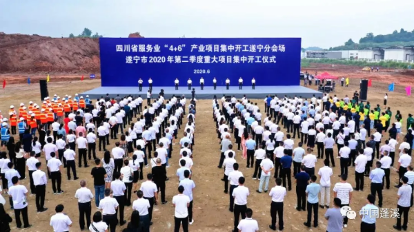 6月19日,四川省服务业"4+6"产业项目集中开工遂宁分会场暨遂宁市2020年第二季度重大项目集中开工仪式在我县经开区上游片区举行。市委书记邵革军出席并宣布开工。市人大常委会主任刘云,市政协主席刘德福及市领导吴相洪、赵京东、张峰、付勇等出席开工仪式。县委书记张智勇在开工仪式上作发言,县委副书记、县长黄亚军,县人大常委会主任黄元章,县政协主席张璋等县领导参加开工仪式。开工仪式由市委常委、副市长张峰主持。