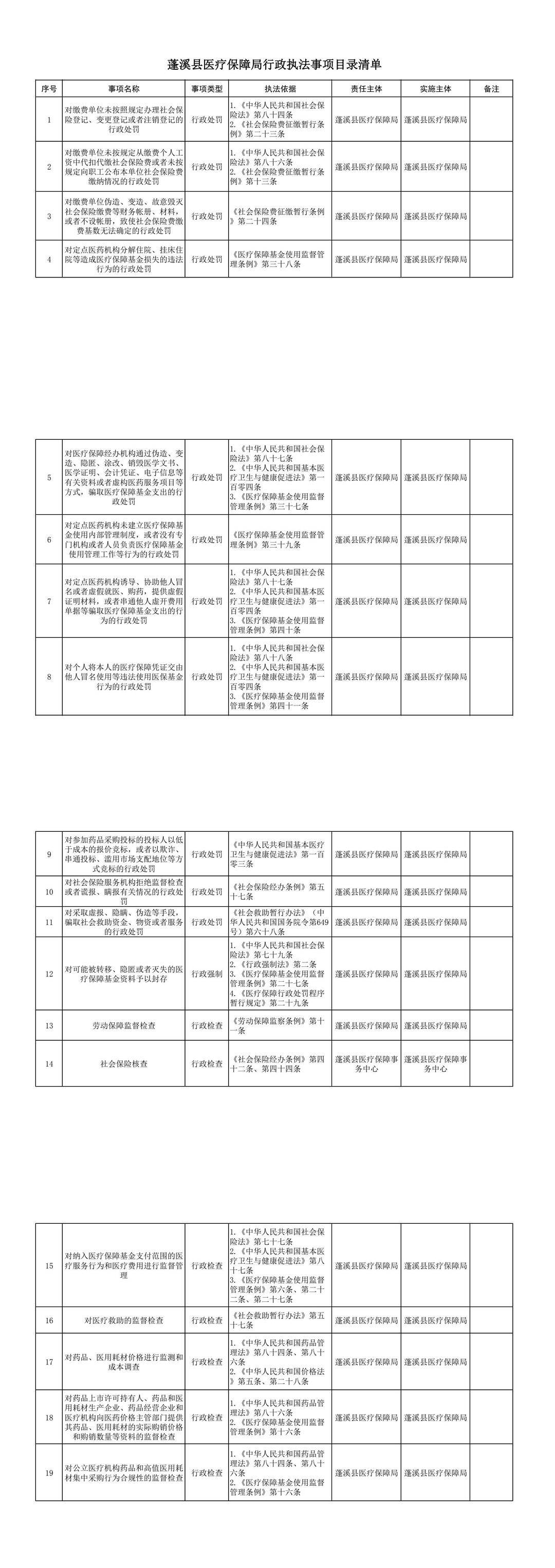 蓬溪县医疗保障局行政执法事项目录清单